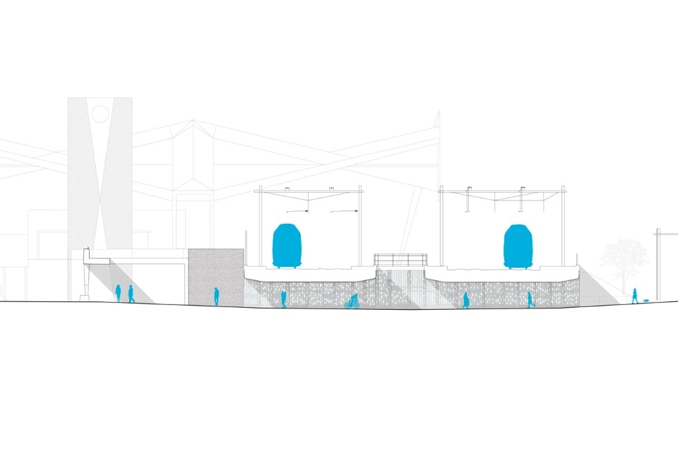 Il passaggio connette un ex edificio ferroviario con un nuovo ristorante, una terrazza pubblica e un giardino, attraversando la città e collegando i due diversi lati. Il passaggio serve da catalizzatore per la riqualificazione del quartiere Spoorzone e ospita numerosi eventi culturali. La sua identità iconica si ispira alla città esistente. I materiali, il ritmo e la composizione del passaggio si riferiscono all’architettura classica di mattoni di via Willem II, in maniera contemporanea.