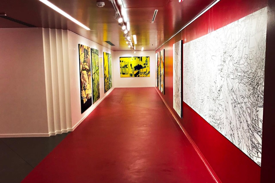 Come scrive Elisabetta Longari in catalogo: “Osservando le sue opere, ciò che salta subito agli occhi è la corsa delle linee, che diventano in alcuni casi veri e propri tagli, interruzioni delle superfici. In architettura come in pittura. L’architettura, come i dipinti di Attilio Terragni, stabiliscono un parallelo immediato con il Finnegans Wake di Joyce, proprio relativamente alla decostruzione e ricostruzione del linguaggio basato sulle infinite combinazioni e metamorfosi, come per restituire la corale ciclicità della vita.”