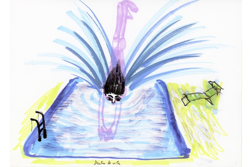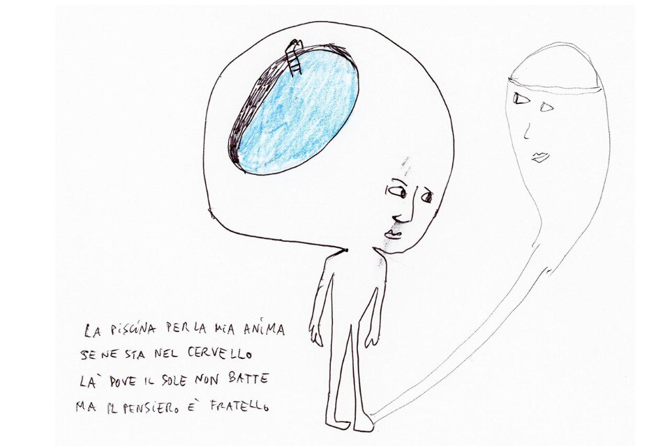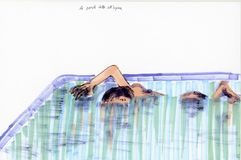 Richiamandosi a una tradizione artistica che risale ai Bagni misteriosi di Giorgio de Chirico e all’opera di David Hockney, la mostra insiste sulla dimensione metafisica e senza tempo della piscina pensata come sorta di “altro mare”, come spazio che, nella continua varietà delle sue forme, ricalca la fisionomia dell’isola riflettendone la sospensione e il senso archetipo di luogo psichico e mentale primordiale. Nella sua valenza tematica e metaforica la piscina è interpretata da Gianfranco Baruchello, Marco Basta, Gregorio Botta, Giovanna Silva, Rä di Martino, Marzia Migliora, Maurizio Nannucci e Gabriele Picco invitati, a partire dalla specificità del proprio linguaggio, a presentare una serie di opere – fotografie, video, installazioni site-specific, disegni – ispirate alla presenza della piscina sull’isola e a offrire un punto di vista personale sul paesaggio come spazio continuamente in bilico tra dimensione naturale e artificiale, sospeso tra fruizione pubblica e dimensione privata.