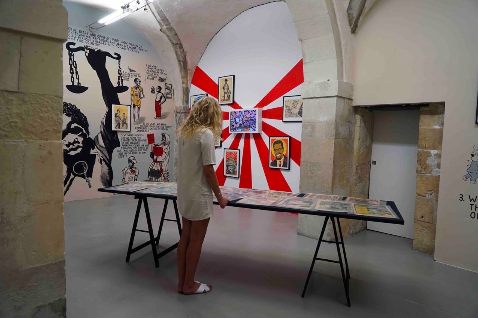 Fig.1 Emory Douglas, "Freedom Is A Constant Struggle", veduta della mostra, Laveronica Arte Contemporanea, Modica, 2017