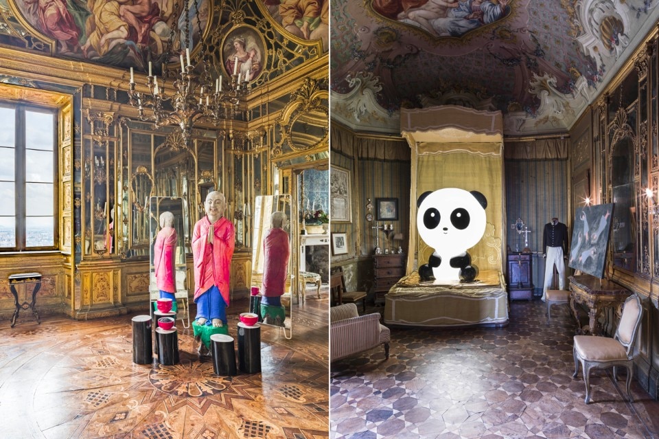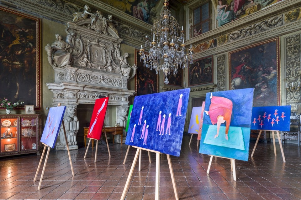 In apertura: Marc Sadler, veduta dell'installazione, Palazzo Moroni, Bergamo, 2017. Qui sopra: Katrin Arens, veduta dell'installazione, Palazzo Agliardi, Bergamo, 2017