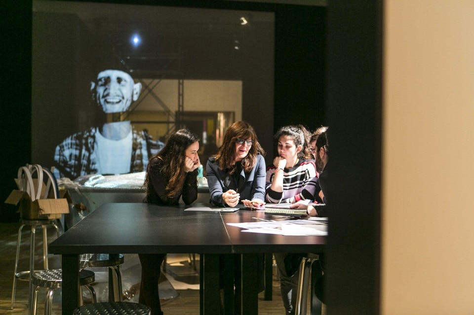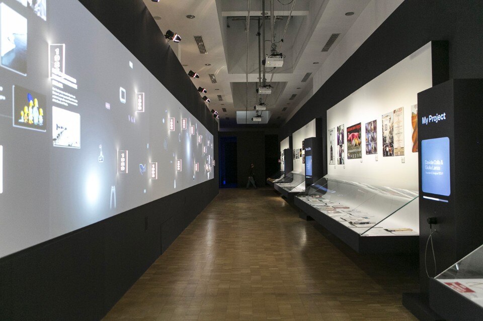 Tutti questi documenti occupano una parete di fronte alla quale una bella installazione multimediale intercala momenti e oggetti di design. Le voci dei docenti si alternano in un racconto video corale che dice delle forti individualità di ciascuno, un modo sintetico di dire cosa è l’insegnamento oggi mettendoci la faccia.
