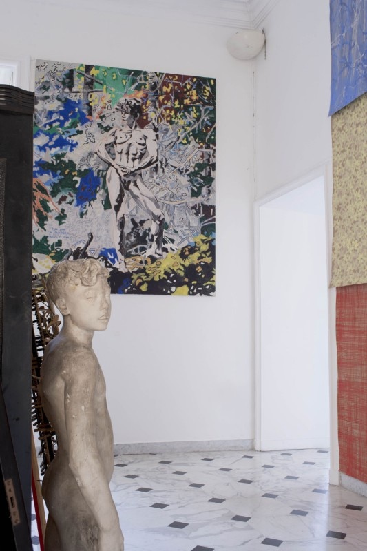 L’interesse di Stefano Arienti per le raccolte pubbliche non è una novità: si pensi alla mostra del 2010 realizzata al Museion di Bolzano insieme a Massimo Bartolini, oppure al suo allestimento dell’anno scorso a Palazzo Te creato con le opere recuperate dal magazzino del museo stesso. A Villa Croce l’artista intreccia le proprie opere con quelle del museo, dando vita a un’unica grande istallazione: qui la disposizione delle opere non rispetta né l’ordine cronologico né i classici criteri museografici, bensì si focalizza sul ritmo dell’attenzione e stimola i visitatori a fruire le opere in maniera creativa.