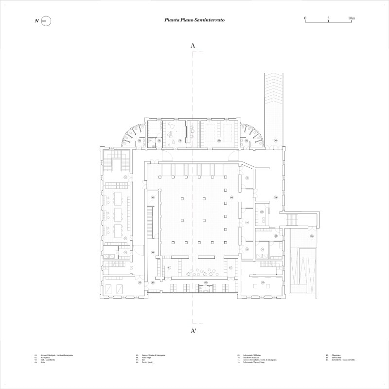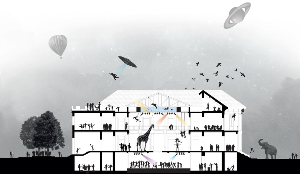 Il progetto architettonico presentato è quasi “invisibile”, prova a impattare minimamente sulla pregiata struttura esistente. Piuttosto che essere un gesto autoriale dall’estetica forte e definita, l’intervento è pensato come un’infrastruttura aperta alle prossime trasformazioni, di chi attraverserà lo spazio in futuro. Lo spazio principale a doppia altezza rimarrà inalterato ed è concepito come una piazza coperta con una piscina sopra. Una video installazione ha rappresentato la stravagante idea di collocare veramente una vasca d’acqua sul lucernario centrale, per risolvere i problemi di insonorizzazione dello spazio. L’opera effimera inoltre ha valorizzato uno degli elementi più preziosi dello spazio e sicuramente quello a cui gli abitanti di Macao sono più affezionati. La corona di spazi circostanti sarà destinata alle attività associative e ai laboratori, mentre al piano interrato si troveranno le funzioni più “rumorose” quali discoteca e falegnameria.