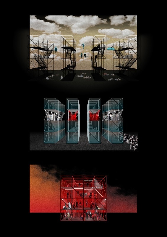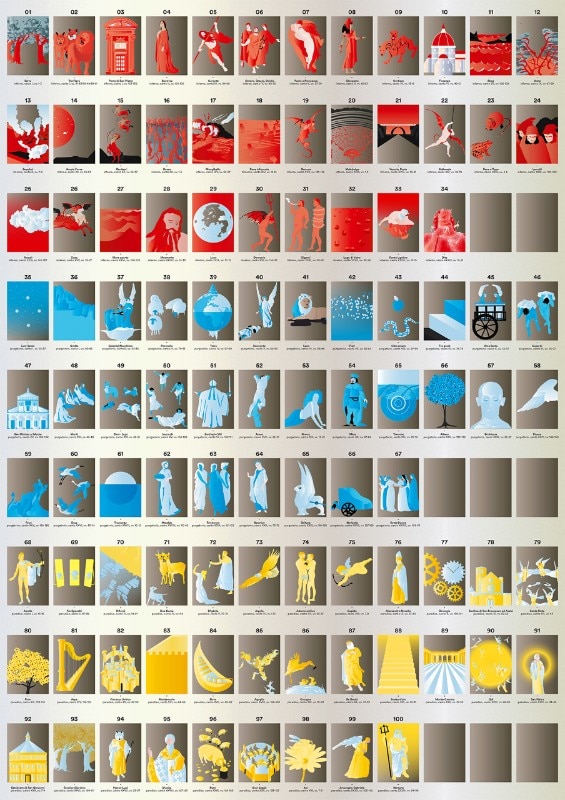 Il viaggio dantesco fra Inferno, Purgatorio e Paradiso ha profondamente affascinato l’immaginario degli architetti italiani. Fra i primi a restituire tale viaggio in forma architettonica è stato Giuseppe Terragni, con il progetto mai realizzato del Danteum. Per questa mostra sono stati 70 gli autori italiani contemporanei di tre diverse generazioni che hanno contribuito offrendo delle visioni contemporanee del poema: fra questi Francesco Venezia, Paolo Portoghesi, Cherubino Gambardella, Aimaro Isola, Andrea Branzi, Michele De Lucchi, Franco Raggi, Ugo La Pietra, Renato Rizzi e Franco Purini. Tutti i contributi degli architetti sono confluiti nel catalogo della mostra pubblicato da Skira.