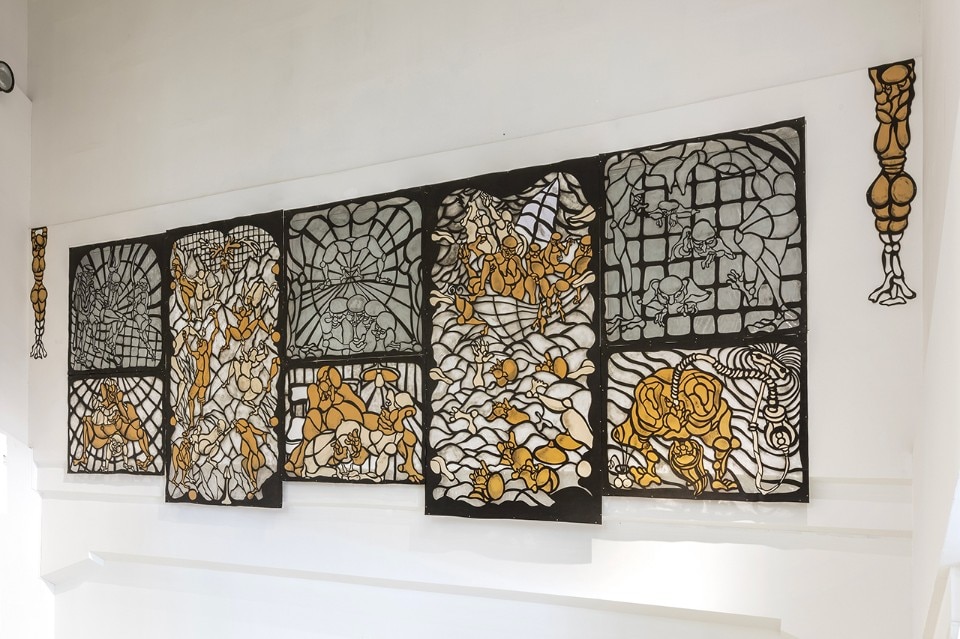 Le pratiche ultime, si innestano e crescono al di là degli alter-ego ben codificati di Diego Marcon (ToonsTune (Four Pathetic Movements), 2016) e Beatrice Marchi (Ruffiana la Mafalda, 2017, legno, acrilico su vetro) come testimonia il Wall Painting (2018) di Ian Tweedy, che arriva a dissipare l’identità stessa del raggruppamento. A testimonianza del fatto che qualsiasi comunità, pur avendo coscienza di sé, modifica lentamente e necessariamente la propria consapevolezza, nel corso dei processi storici, sociali, culturali, economici, linguistici e anagrafici all’interno del quale diventa movimento.