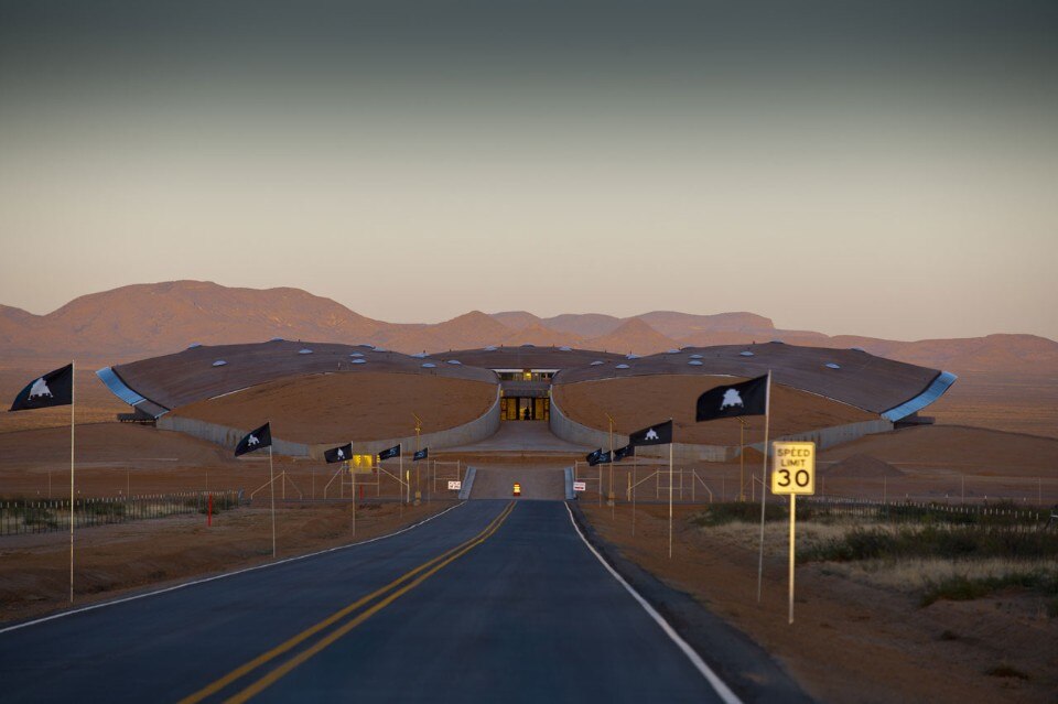 Così come descritto da Foster + Partners è il primo edificio dedicato a questo genere di attività. Dallo spazio riprende la forma del logo di Virgin Galactic, a forma di occhio. È studiato per il minimo impatto sull’ambiente. La forma organica dell’aeroporto sembra uscire dal paesaggio. C’è un attento equilibrio tra accessibilità e privacy. Le aree e gli spazi degli astronauti sono completamente integrati con il resto dell’edificio, mentre le aree più sensibili sono visibili. Dai confini del Nuovo Messico, la forma bassa viene scavata nel paesaggio, viene sfruttata al massimo la luce naturale con la luce diurna dei lucernari. La struttura è sostenibile e compatibile con l’ambiente.