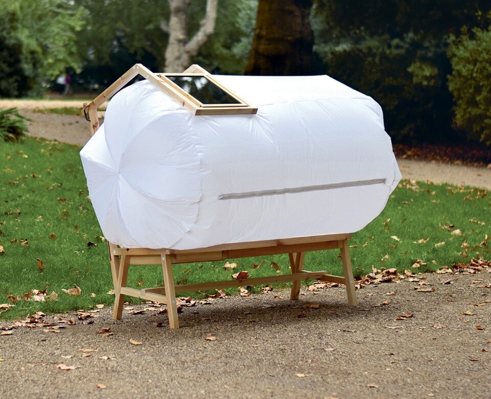 Da due secoli gli oggetti gonfiabili non smettono di stupire (e divertire) architetti, artisti e designer. Il volume Bubbletecture ne riunisce di ogni dimensione, forma e colore: vestiti e cappelli, edifici, sedie, luci, ciotole e persino portauova oltre a giocattoli e installazioni d’arte provocatorie. Come la panchina urbana di Thor ter Kulve, un rifugio gonfiabile dotato di caricatore USB a energia solare, a partire da una semplice panchina di legno. È realizzata con materiali di riuso e riporta il concetto di casa alle sue caratteristiche essenziali: la protezione dagli agenti atmosferici. E, ancora, come la Ark Nova di Arata Isozaki e Anish Kapoor, sala concerti itinerante nata dopo lo tsunami che ha colpito il Giappone nel 2011.