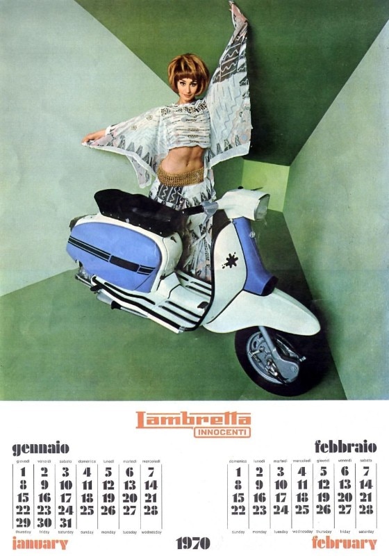 Per Innocenti Raffaella è il volto della Mini 1001 e del calendario 1970, per cui viene fotografata assieme a mezzi quali la Lambretta DL e il Lui; uno degli scooter meno fortunati quanto più avveniristici nella comunicazione dai forti richiami sci-fi sullo stile delle campagne che negli stessi anni B&B proponeva per la sua serie di sedute UP di Gaetano Pesce (1969).