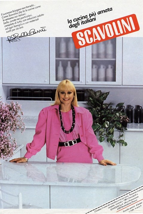 Nel 1984 sigla un contratto come testimonial delle cucine Scavolini, “Italiane perché belle, pratiche da viverci e fatte per durare” come recita nello spot una Carrà maternamente icona del focolare ma non per questo meno diva. E oggi, che a rappresentare le cucine Scavolini sono rimasti gli chef da talent show, non possiamo che lanciare una petizione affinché il prossimo Compasso d’Oro venga assegnato, ad honorem, al caschetto platino scolpito dai parrucchieri Vergottini in qualità di icona del design italiano nel mondo.