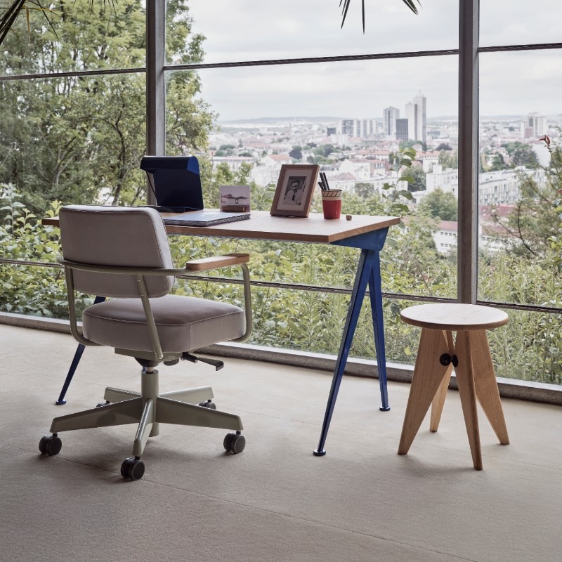 Rolf Fehlbaum durante una visita a Parigi negli anni ’80 acquistò una Antony Chair da Jean Prouvé, risalente al 1954. Tale acquisto ha segnato l’inizio della collezione più completa al mondo di arredi del designer francese, oggi al Vitra Design Museum. In stretta collaborazione con la famiglia Prouvé, progetti selezionati sono finalmente entrati in produzione in serie nel 2002, nell’intento di rendere nuovamente accessibili a un pubblico più vasto questi prodotti in un certo senso caduti nell’oblio. “Per me, Jean Prouvé è stato l’omologo francese di Charles e Ray Eames: hanno in comune la combinazione di onestà strutturale e la conseguente espressione creativa della bellezza senza tempo”, spiega Fehlbaum.