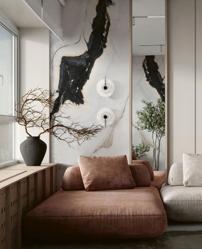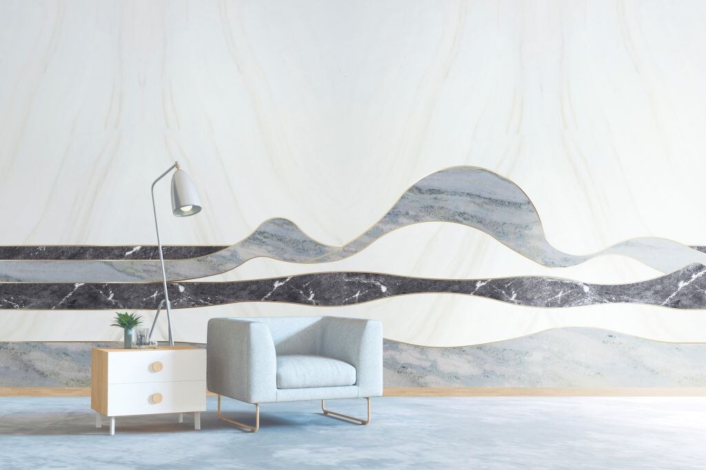 Uno degli aspetti più emblematici dei materiali lapidei è che nessuno è esattamente uguale all’altro, perciò l’approccio di Antolini è quello di valorizzare le imperfezioni delle cave, lavorando su materiali ibridi e riducendo di gran lunga gli scarti.