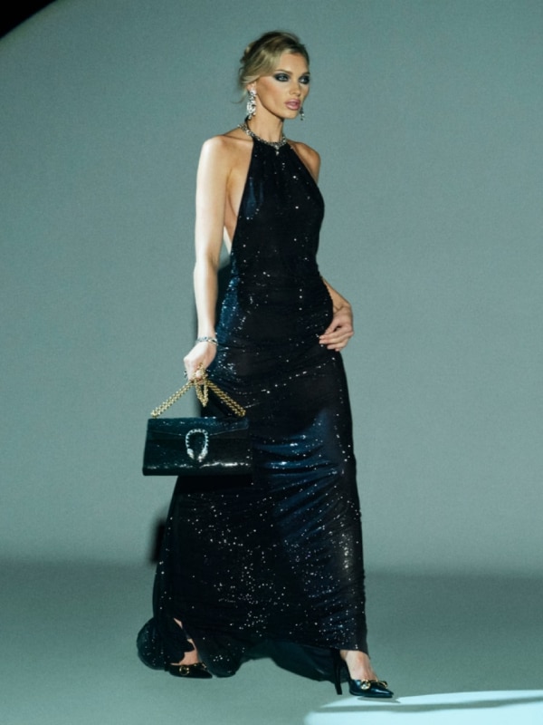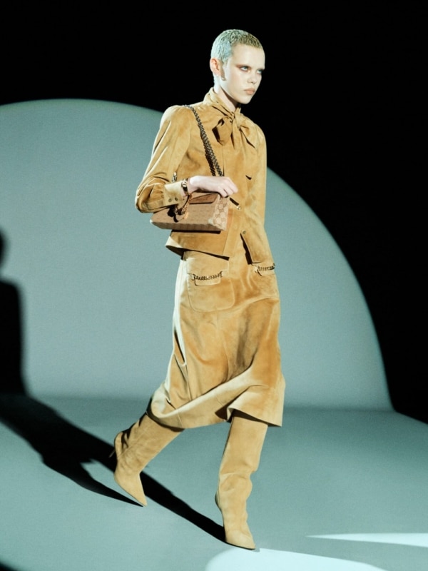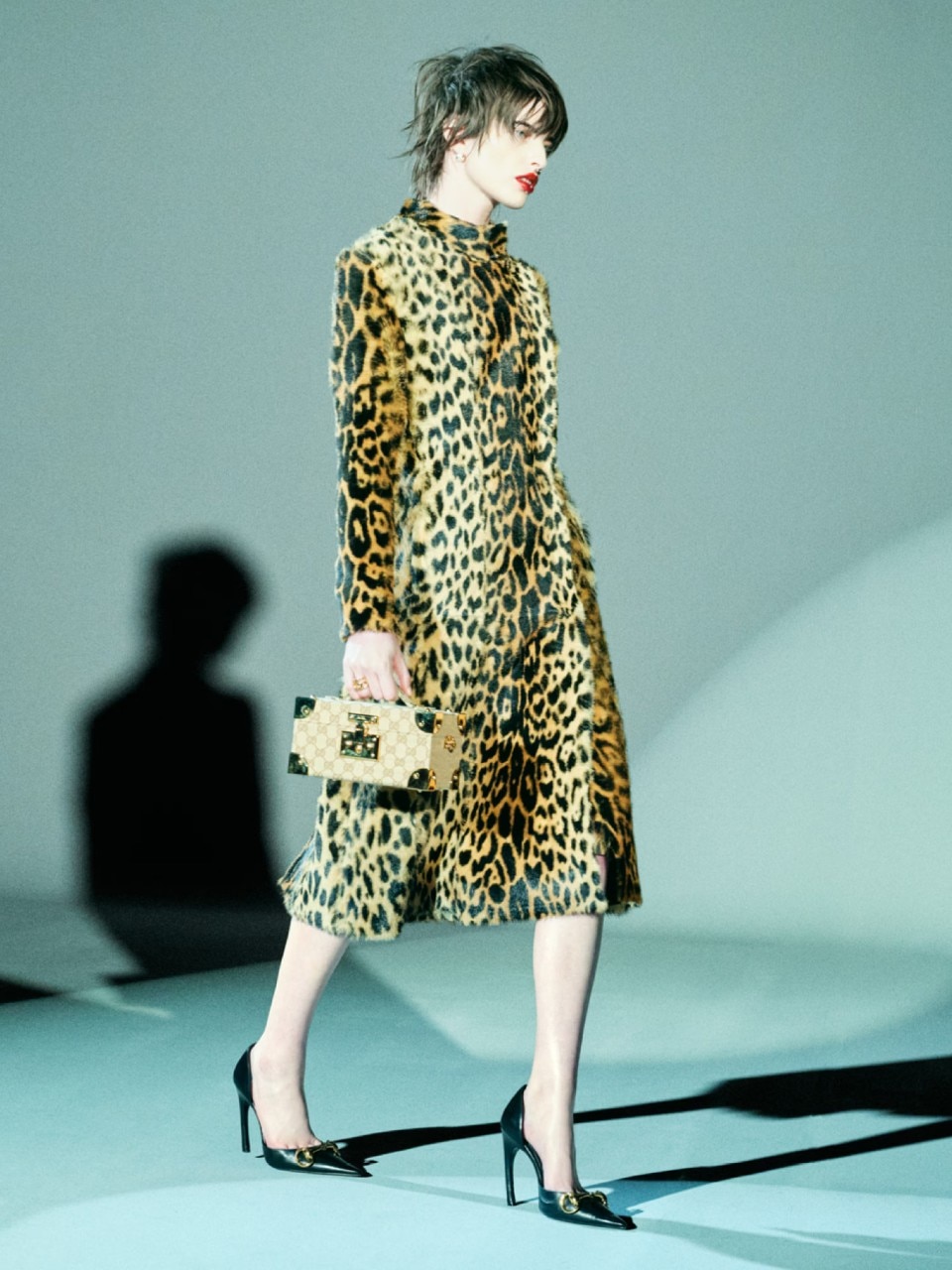 Il risultato finale è una celebrazione del passato di Gucci, contaminato dal più attuale stile Demna, un gioco dove citazione e innovazione si sposano e si mescolano non senza una punta di sentimento: le classiche pellicce su pelle nuda e pencil skirts abbinate a nuove cinture con fibbia a doppia G, seta stampata ispirata ai foulard d’archivio o occhiali da sole, signature piece di Demna. Il progetto si presenta come un’anticipazione del prossimo lavoro di Demna, che sarà rivelato a febbraio 2026