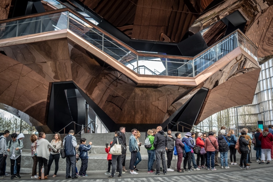 Anche le Olimpiadi Invernali a Milano si manifestano in una coreografia urbana che ha poco a che fare con lo sport e molto, invece, con l’attesa davanti a pop-up store esperienziali (come quelli di Airbnb ed Esselunga), “case” dedicate ai tifosi dei diversi paesi e una costellazione di architetture temporanee che distribuiscono gadget legati alla stessa struttura della città. Le spille di YesMilano, ad esempio, sono ciascuna dedicata a un quartiere e hanno già generato le code più lunghe di tutti i Giochi.
