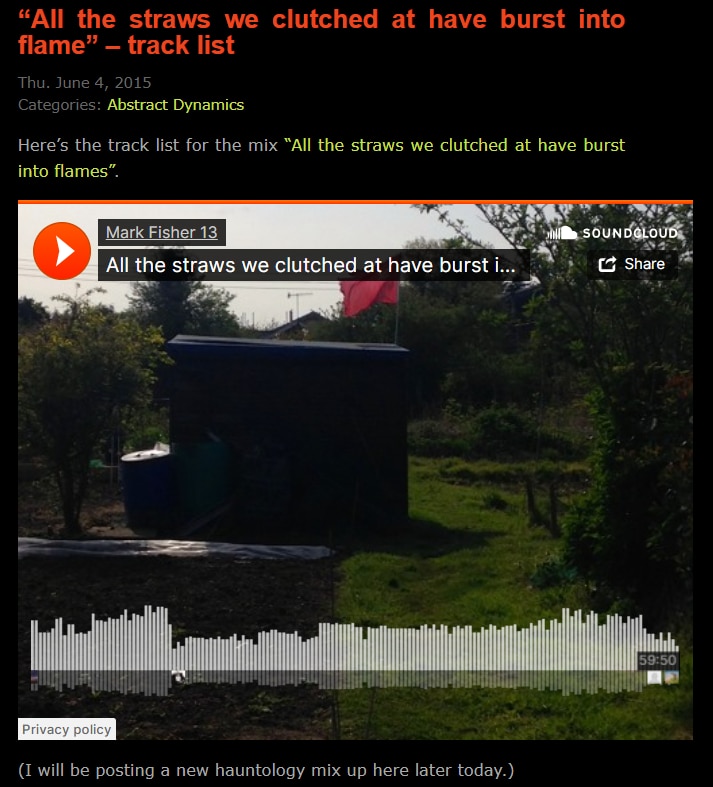 Per capire perché Fisher continui a tornare, bisogna capire da dove è venuto. Tutto iniziò nel 1995, quando Fisher prese parte a un esperimento che mirava a spingere la nascente cultura tecnoutopica verso estremi più ambigui e perturbanti: la Cybernetic Culture Research Unit (Ccru) dell’Università di Warwick. Un laboratorio di ricerca anti-accademico e controverso, in cui filosofia continentale, cultura rave, fantascienza, teoria del caos ed esoterismo convivevano in un impasto distopico e nichilista. Quando, già nel 2003, l’esperimento fu respinto dall’università, Fisher inaugurò il blog K-Punk, destinato a diventare uno snodo centrale della critica culturale online. È qui che confluì la sua eccitazione per il futuro — l’idea che ciò che non è ancora possa irrompere nel presente e modificarlo, ciò che la Ccru chiamava iperstizione — ma, gradualmente, anche la consapevolezza della sua progressiva scomparsa, sostituita da un presente che si ripete senza fine. Prendono così forma il suo stile e il suo lessico più riconoscibili: come hauntology, termine mutuato da Derrida per descrivere un immaginario infestato da fantasmi di stili passati e possibilità negate; e realismo capitalista, la constatazione che “il capitalismo occupi tutto l’orizzonte del pensabile”, con le conseguenti ricadute fisiche e psicologiche sull’individuo.
