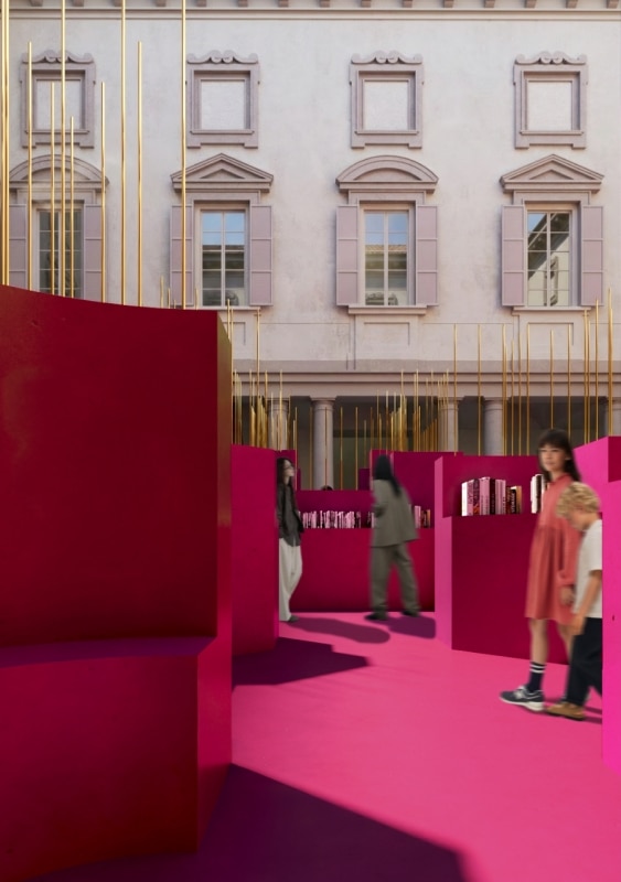 “L’installazione è a tutti gli effetti un labirinto giocoso che attiva questo spazio senza alterarne la struttura, introducendo un livello contemporaneo che offre ai visitatori una pausa silenziosa all'interno dell'intensità dell'esperienza della Design Week. La metamorfosi emerge attraverso l'uso e il cortile si evolve da soglia a bene comune, da rappresentazione a partecipazione, trasformando lo spazio, la memoria e l'esperienza in un'unica narrazione architettonica dinamica” ha raccontato l’architetta.