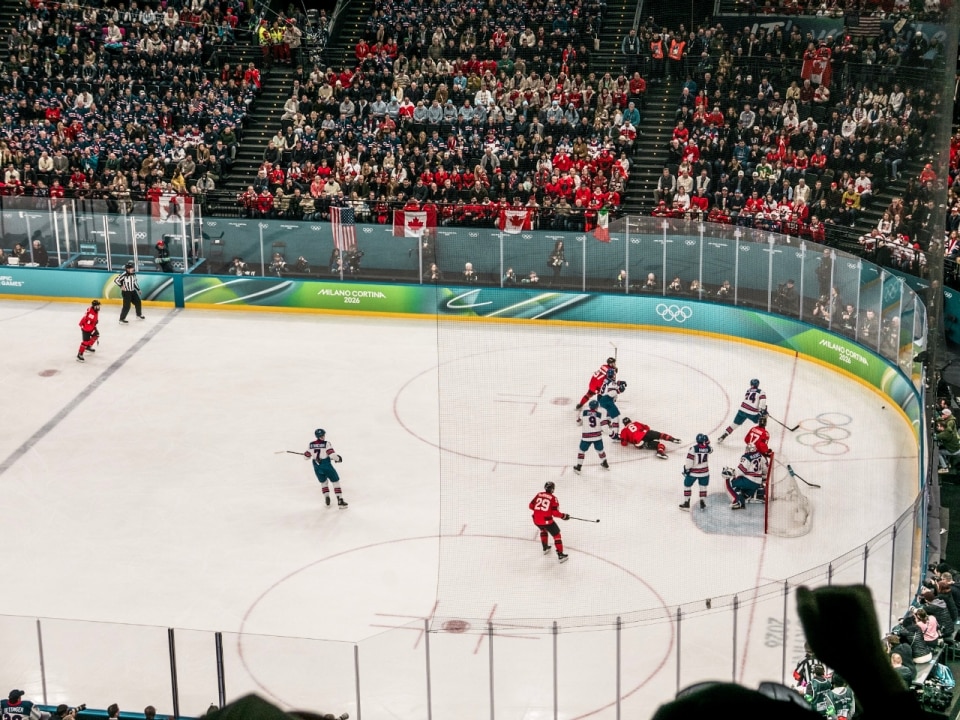 In questo senso, la finalissima di hockey su ghiaccio maschile tra Usa e Canada è stata un trionfo di rosso su bianco ovunque (dati i colori comuni alle due nazioni): nella tifoseria, nelle divise, ma soprattutto impressi sulla retina se osservati dall’alto — posto privilegiato — del campo immacolato dell’Arena Milano, nuovissima, costruita in foto-finish per ospitare il torneo e non solo.