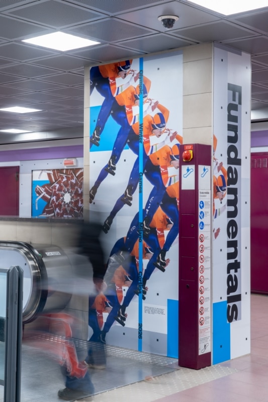 Interessante anche il lavoro dello Studio Tomo Tomo con Edizioni Zero, che ha rifasciato la stazione di Portello (vicino a CityLife) con “Fundamentals”, l’intervento dedicato ai principi di ciascuno sport, comprese citazioni di Boccioni.
