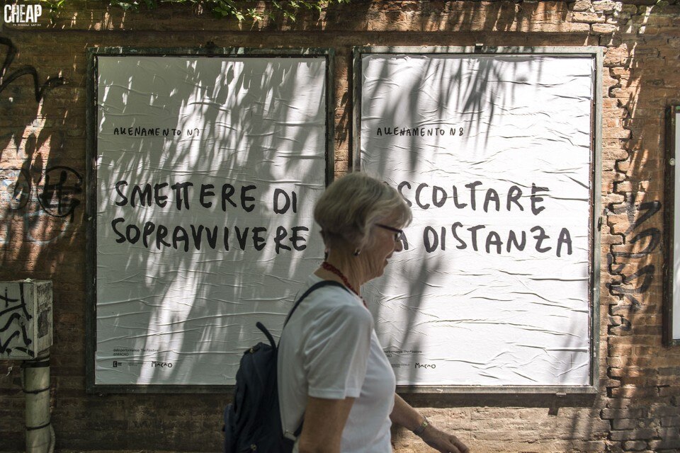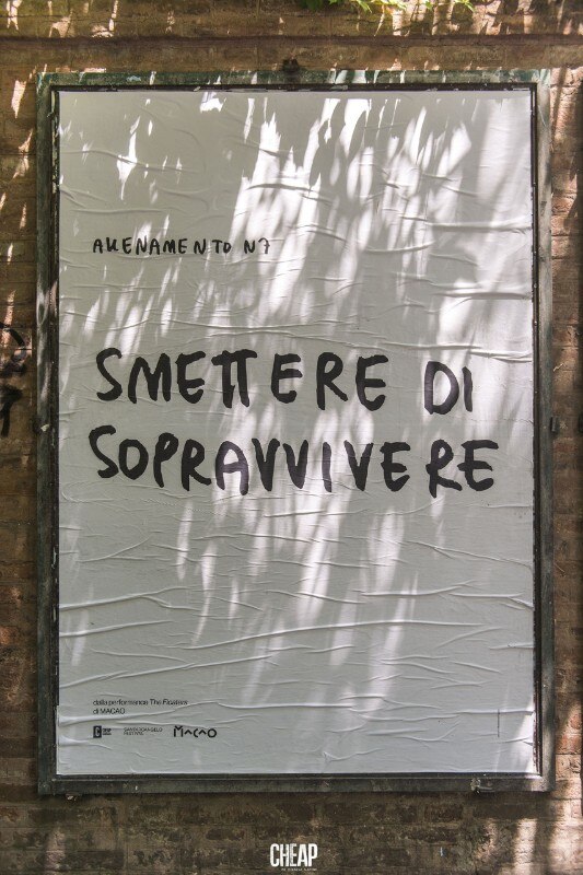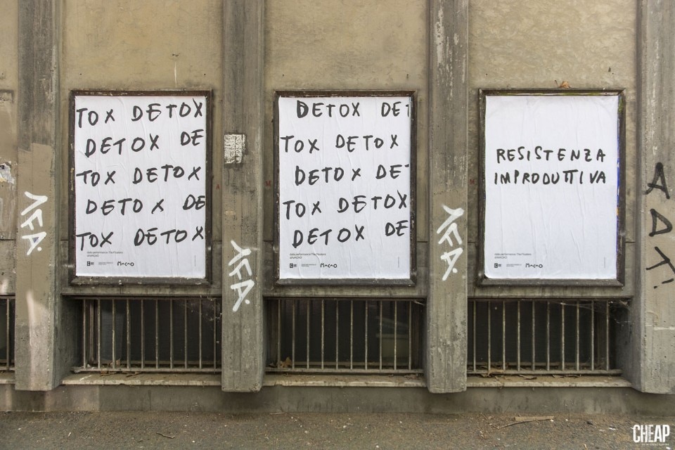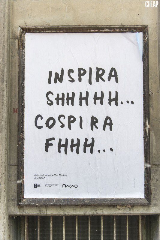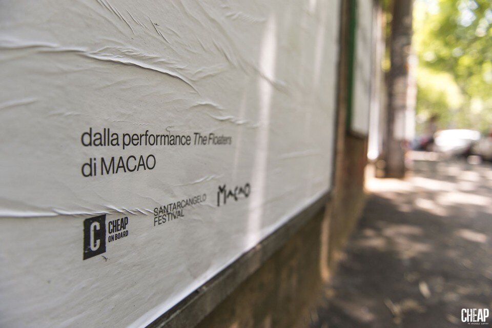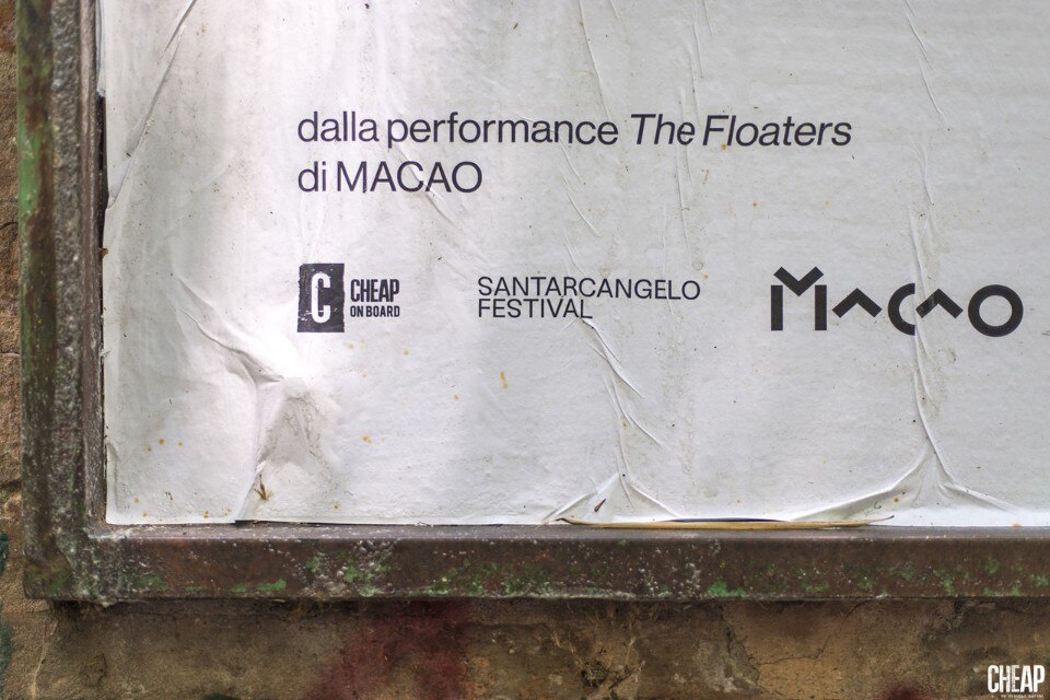 Si chiama "The floaters" il progetto artistico ideato dagli street artist Cheap e Maddalena Frigerio della milanese Macao che invita le persone a disintossicarsi dalla vita frenetica. L’evento artistico realizzato nell’ambito del Santarcangelo Festival che si svolge in Romagna, è costituito da cartelli pubblicitari disposti in via Irnerio a Bologna che divulgano messaggi in favore di un reset fisico e mentale. Disidentificarsi, smettere di sopravvivere, ascoltare la distanza, inspirare per cospirare, sentire le molecole: questi sono gli inviti all’ozio “politico”. Non solo parole ma anche esperienze: è presente una vasca di deprivazione sensoriale, nata dalla collaborazione con i designer Erasmus Scherjon, Gero Asmuth, Travis Broussard e con la performer Hrefna Linda Larusdottir, che si trova nel Supercinema di Santarcangelo per tutta la durata del Festival, ed è destinata a purificare le anime iperproduttive.