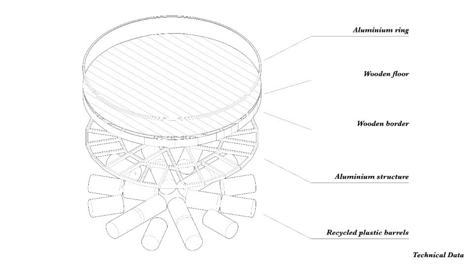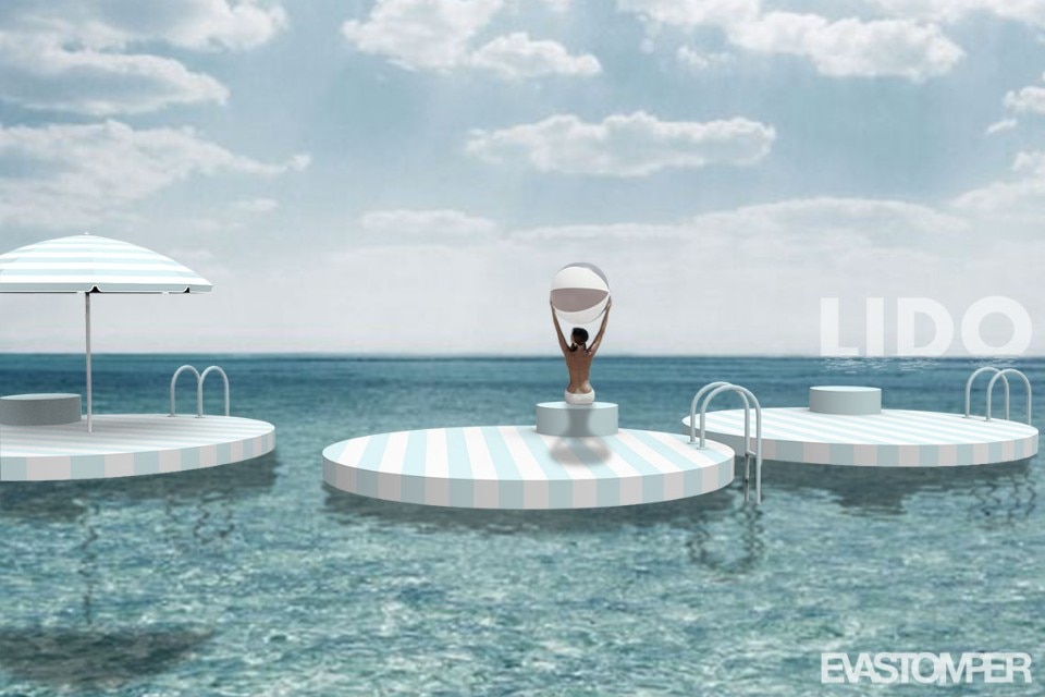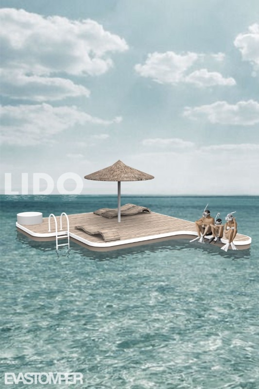 Lido è un modulo circolare, disponibile in due dimensioni, capace di galleggiare sul pelo dell’acqua grazie all’utilizzo di galleggianti di plastica riciclata. La varietà di texture proposti si combina con i colori dei lidi mediterranei, mentre la piattaforma può essere ulteriormente personalizzabile tramite ombrelloni, tende o piante.