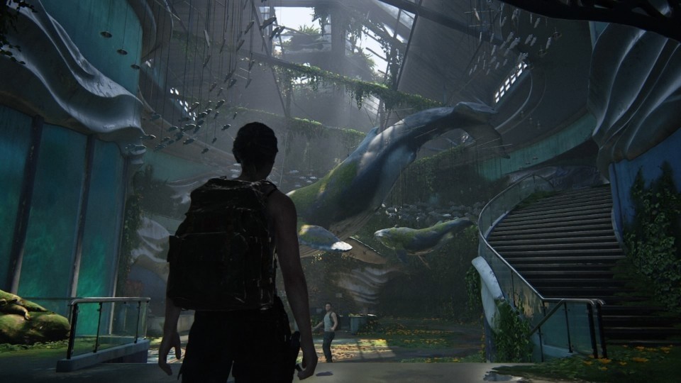 Esistono alcuni passaggi di Last Of Us II pensati e disegnati appositamente per dire qualcosa solo con gli ambienti e altri in cui gli ambienti introducono il mood, altri ancora in cui l’organizzazione dello spazio spiega quel che non sappiamo ancora o quel che è necessario capire dell’antefatto della storia. Come nelle opere migliori, invece che essere imboccati da una spiegazione, siamo noi a trarre le nostre conclusioni da quel che percepiamo e del resto i videogiochi sono il mezzo migliore per fare tutto ciò tramite l’architettura, perché consentono la creazione di ambienti tridimensionali da vivere ed esperire come nel mondo reale.