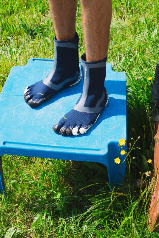 Le five fingers sono un prodotto di Vibram, disegnate da loro e registrate da loro. Noi siamo sempre stati affascinati dai loro principi di funzionalità e comfort così abbiamo deciso di reinterpretare questo modello che parte proprio dall’idea di indossare una scarpa che permette di avere le dita a contatto con il suolo. La Suicoke è stata progettata con la suola trail (Vibram FF ha diversi tipi di suole) e partendo dalla suola abbiamo disegnato l’upper con il nostro twist e i nostri colori. Lo stivaletto five fingers di Suicoke con Vibram ha la particolarità di avere una chiusura a ganci, nella parte posteriore, che riprende quella delle tabi giapponesi, scarpa che nasce per portare le portantine a mano su strada.