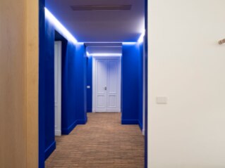Pareti blu elettrico in un appartamento ristrutturato di Torino
