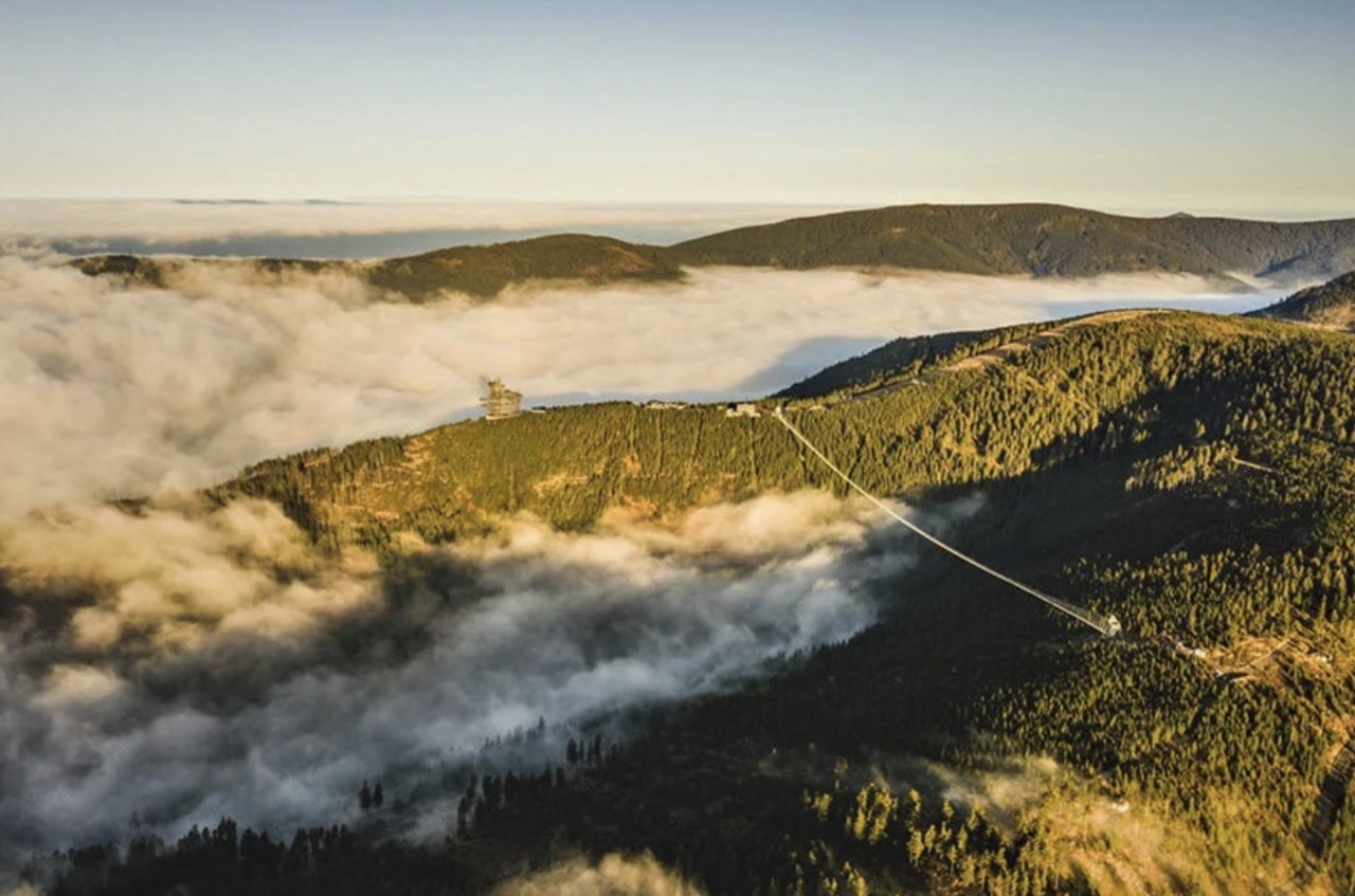 Il 13 maggio, in Boemia orientale, è stato inaugurato lo Sky Bridge 721, un ponte largo un metro e venti e lungo 721 metri, che si estende tra due creste montuose a 95 metri d’altezza. Il ponte conduce dallo Slaměnka Chalet fino al Chlum Hill.