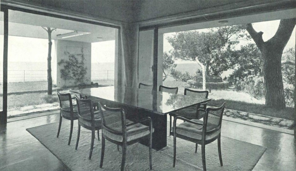1100 i metri quadrati della casa, 9 le camere (e 6 bagni), divise tra quelle padronali al piano terra e quelle per gli ospiti al primo piano. La parte più preziosa sta poi nel sistema di spazi di ingresso e di ricevimento, con una scaletta di ardesia che conduce a un soggiorno dove Daneri "lecorbusieriano di ferro” colloca superfici, vetri e promenades architecturales che evocano la parigina Villa la Roche. Le grandi vetrate di soggiorno e sala da pranzo, una volta aperte completamente, estendono dentro la casa la natura che la circonda, in continuità con le strutture esterne di ombreggiamento dei terrazzi, anche loro di gusto lecorbusieriano.