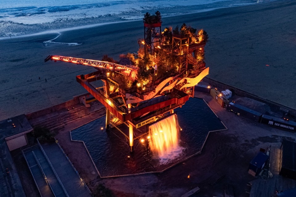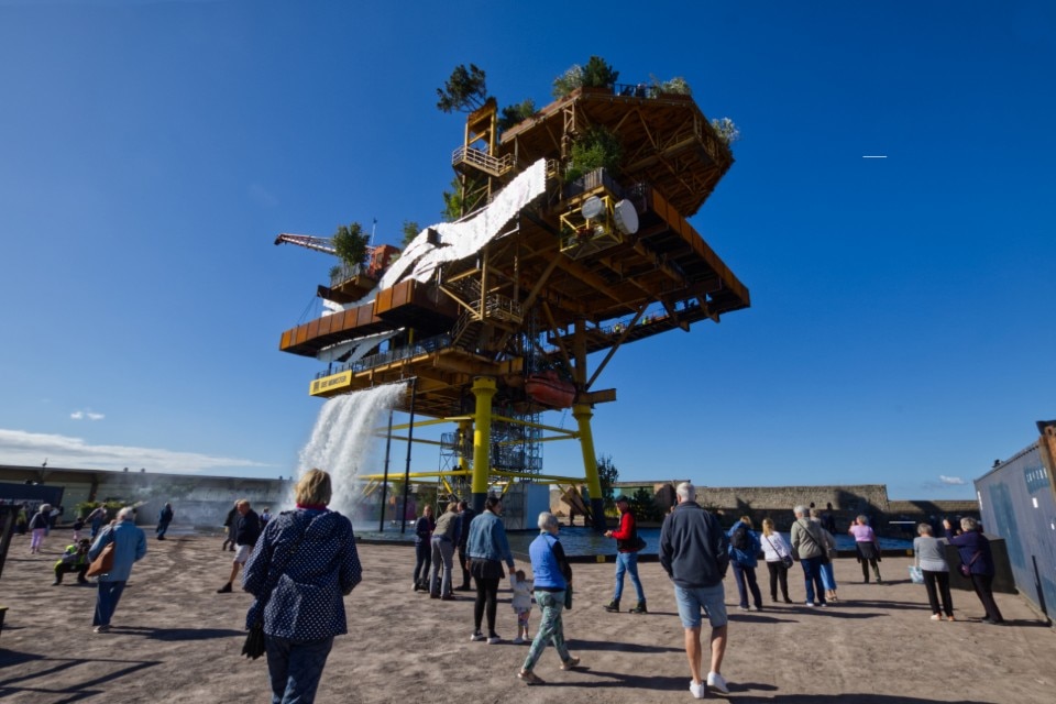 La piattaforma petrolifera di quattro piani e 450 tonnellate è stata posizionata in una piscina poco profonda sul lungomare di Weston-super-Mare, in Somerset. I suoi piani superiori ospitano un giardino selvaggio composto da piante adatte al clima atlantico. L’installazione artistica presenta uno scivolo multi-livello, uno studio di produzione media e un anfiteatro, mentre l’ex eliporto della piattaforma adesso funziona come osservatorio e una cascata cade per 10 metri dal piano più basso.