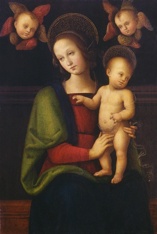 L’idea della mostra è nata intorno all’opera più preziosa della Fondazione Perugia, la Madonna col Bambino e due cherubini, che ritrae la Vergine con il bambino che si stagliano su uno sfondo completamente nero, permettendo agli incarnati e ai colori delle vesti di risaltare in un modo del tutto innovativo per l’epoca.