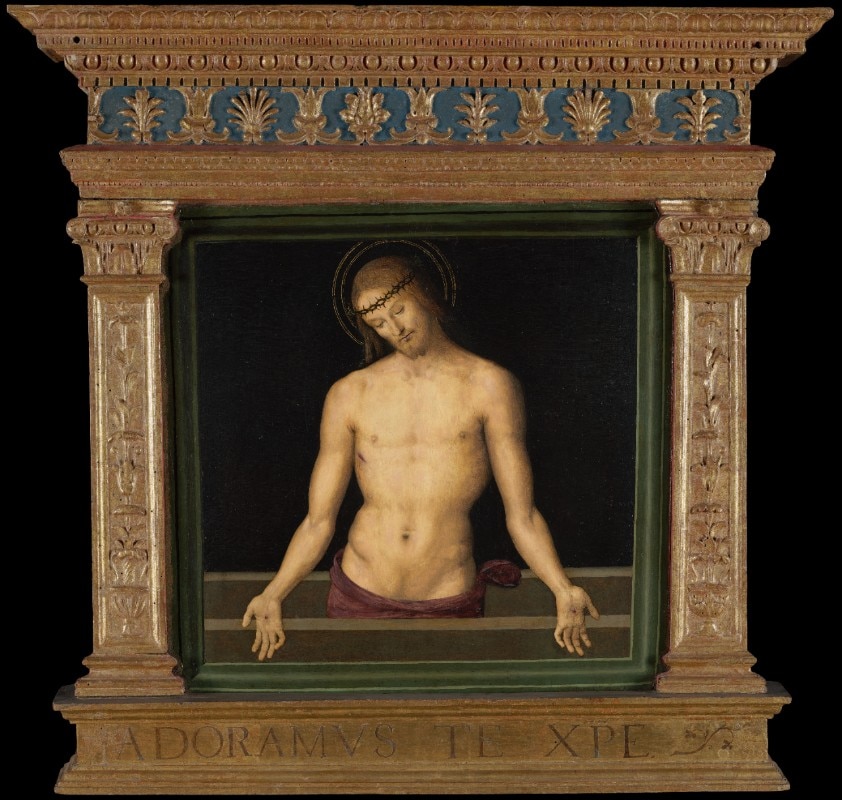 L’opera risale agli anni più ricchi del percorso del maestro, quando, attivo a Firenze, conosce e assorbe la pittura fiamminga e la luce di Leonardo, ma è anche coinvolto dall’atmosfera di Venezia dove si reca più volte. Da qui la volontà di indagare l’uso dello sfondo nero in opere di piccolo formato datate a cavallo tra il XV e il XVI secolo, dove non c’è nessun paesaggio ideale o architettura prospettica, ma solo il nero profondo, su cui si stagliano i protagonisti della scena, come mai si era visto prima.
