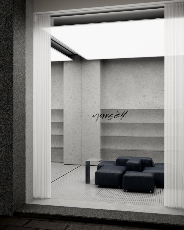 Il brief del progetto aveva come unica richiesta quella di immaginare uno spazio che unisse la modulazione degli ambienti di Marcel Breuer e le atmosfere sospese di Carlo Scarpa. Da qui, dopo otto mesi di collaborazione tra il marchio e lo studio berlinese Lotto Studio, è nato uno spazio moderno, confortevole e al tempo stesso solenne, in cui su 400 metri quadri disposti su due livelli viene "messo in scena tutto il repertorio di creazioni Marsèll.