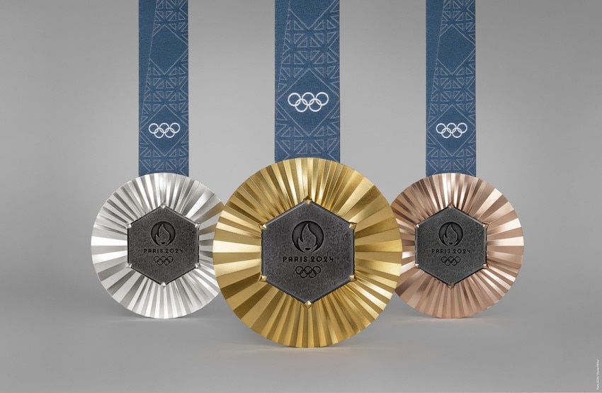 Sono state svelate le medaglie delle Olimpiadi e Paralimpiadi di Parigi 2024 e la loro particolarità è che al centro hanno incastonato un elemento lucido esagonale, prodotto usando ferro proveniente nientemeno che dalla Tour Eiffel, del peso di 18 grammi. Il ferro utilizzato per le medaglie fa parte di ferro in eccesso era stato rimosso dal monumento e conservato in seguito ad alcuni lavori di ristrutturazione. Del design delle medaglie se ne è occupata la famosa gioielleria Chaumet, che si trova in centro a Parigi ed è parte del gruppo francese LVMH, leader mondiale nel settore del lusso.