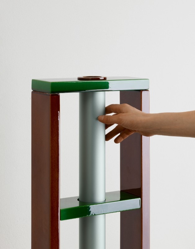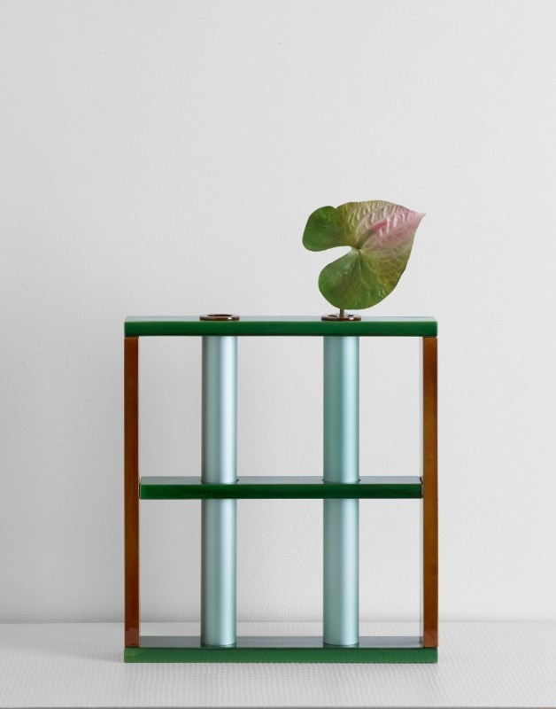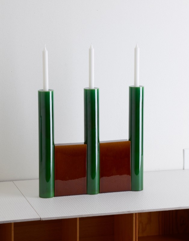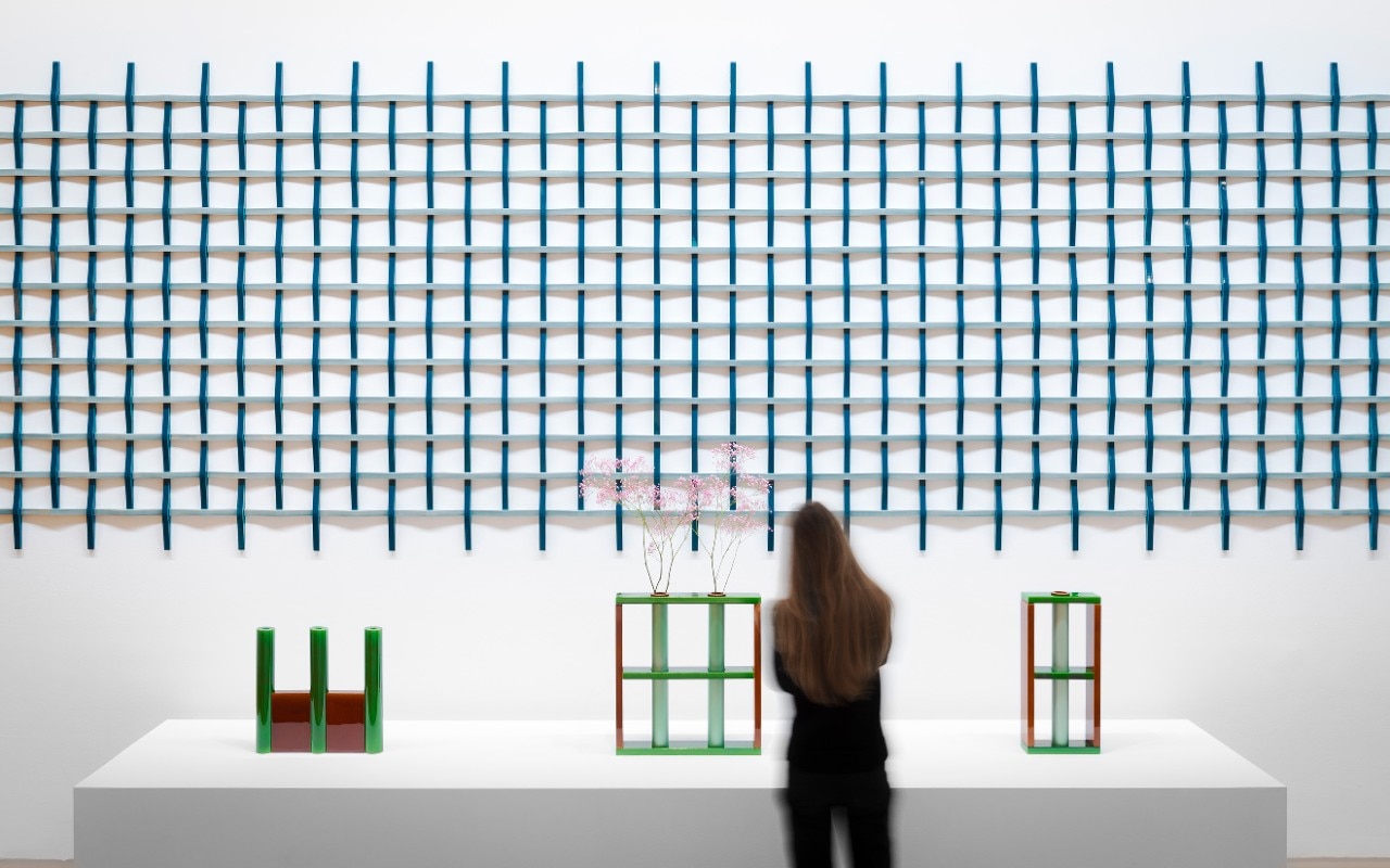 Tra questi c’è Adagio, un’installazione murale modulare e adattabile, caratterizzata da una struttura a traliccio che ricorda i motivi tessili. Il nome, ispirato al tempo musicale, sottolinea l’applicazione lenta e ponderata di ogni elemento, seguendo un sofisticato motivo incrociato. Inoltre sono esposti Camino, Camini e Candeliere. Le prime due sono collezioni che combinano vasi cilindrici in alluminio anodizzato con elementi ceramici, mentre Candeliere è un supporto luminoso modulare.