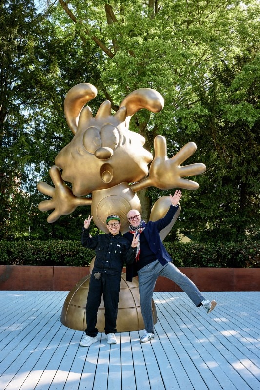 Sempre dall'Oriente arriva Verdy, che porta il suo celebre personaggio Vick  ai Giardini della Biennale con una statua in bronzo. "In una edizione che celebra il concetto di straniero, noi lo facciamo con un personaggio anarcoide, strano", spiega Giordanetti. "È un coniglio-panda che ama la  musica punk”, spiega a Domus lo stesso Verdy, che incontriamo nei giorni del pre-opening della Biennale: affabile, sintetico nelle risposte, indossa un paio di occhiali tondi sotto il cappellino del suo brand Wasted Youth. Per questa occasione, Vick è diventato per la prima volta una statua di bronzo. “Era la prima volta, ma è stato naturale”, spiega l'artista.
