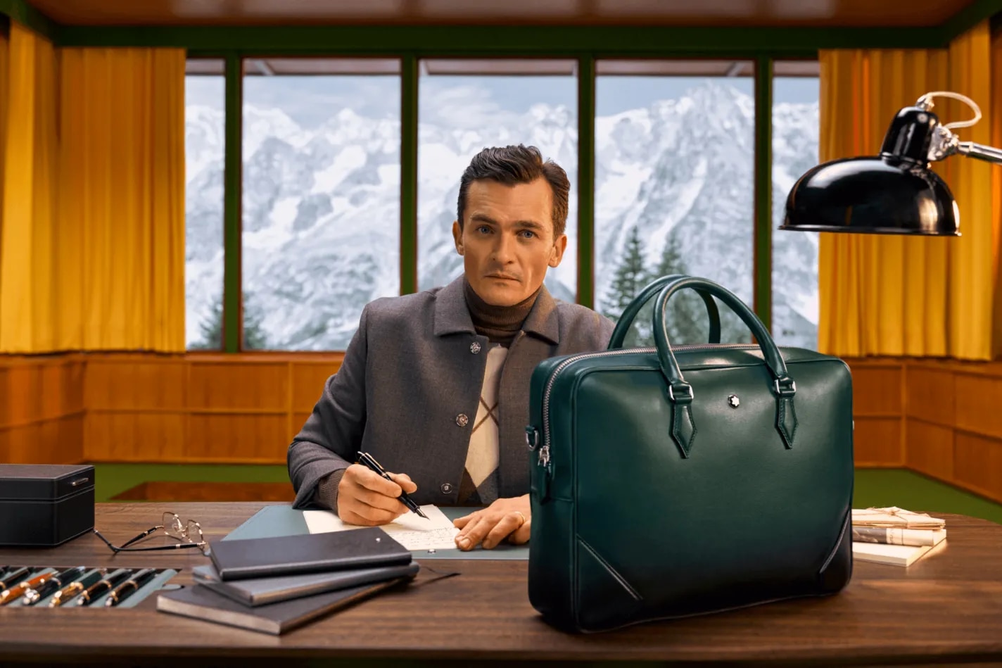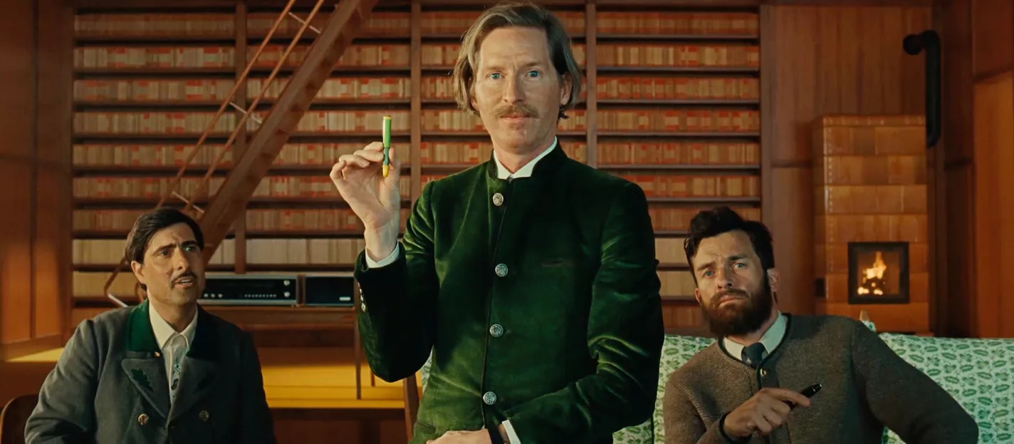 Anderson ha sorpreso Montblanc annunciando agli esecutivi una sua stessa penna, che aveva fatto assemblare dal suo team di scenografi ed è poi stata inclusa nel corto: la Schreiberling, che sta per “scribacchino” in tedesco. Una piccola penna con tonalità più chiare ed acide di verde rispetto alla collezione Meisterstück, e ha l’ultima parte gialla, come i pavimenti della baita. Una piccola penna irresistibile, che per qualche motivo evoca l’altrettanto piccolo lapis che Hans Castorp chiede a Clavdia Cauchat ne La montagna incantata di Thomas Mann. Anche se Friend sostiene subito di preferire la classica Meisterstück (che in tedesco significa “capolavoro”), Montblanc ha accettato di produrre 1.969 esemplari di questa piccola penna stilografica verde che commemora l’anno di nascita di Anderson, il 1969. Infine, i tre salgono nella sala di scrittura con le loro penne. Schwartzman scriverà una lettera a sua madre, Friend il suo diario, e Anderson un assurdo romanzo ambientato durante il feudalesimo, ha già – o solo – scritto la prima frase e teme di averla copiata da qualche altro libro.