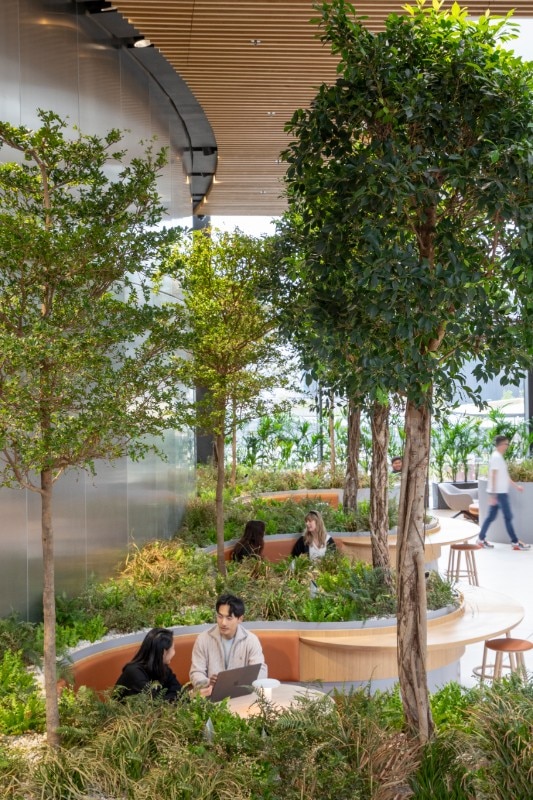 Grandi vetrate, balconi, presenza di piante e materiali naturali in tutto lo spazio puntano a fornire un ambiente salutare e capace di aumentare il benessere di chi lo vive. Inoltre, l’edificio dispone di una terrazza sul tetto, per accogliere lezioni di attività fisica ed eventi aziendali. Nella primavera del 2025 aprirà un nuovo ingresso alla stazione della metropolitana direttamente sotto l’edificio, per rendere ancora più efficienti gli spostamenti da e verso l’ufficio.