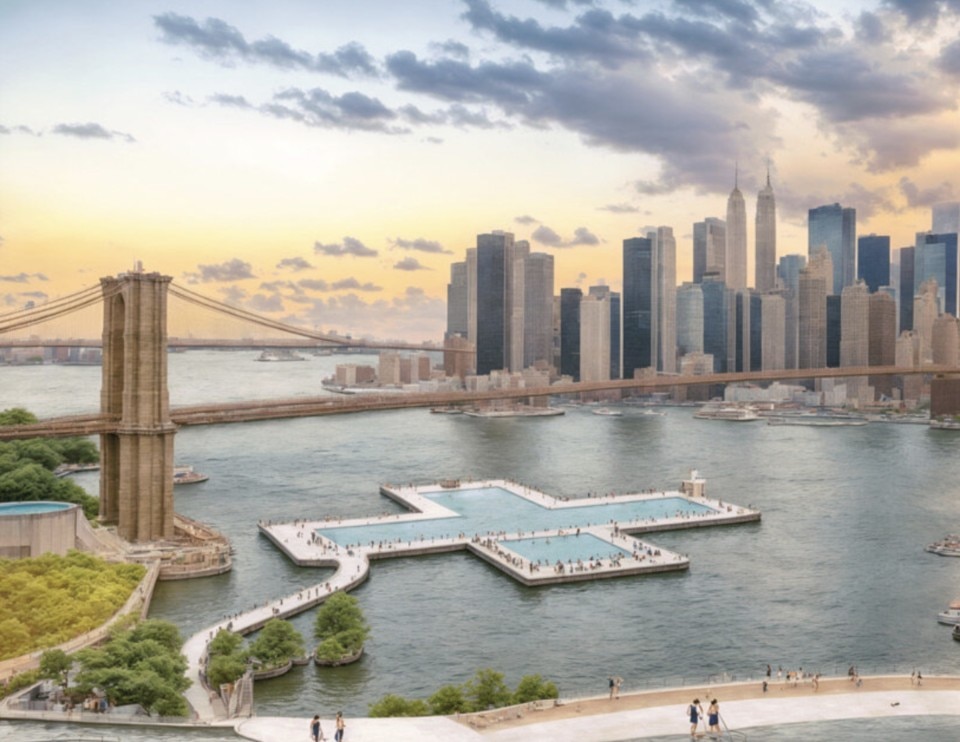Lo Stato di New York, insieme alla città di New York, stanno collaborando rispettivamente con 12 milioni e 4 milioni di dollari per finanziare il progetto dimostrativo di tre mesi di filtrazione dell’acqua insieme al prototipo di 186 mq della piscina, inaugurato ad agosto. Si tratta del più grande investimento statale nel nuoto dai tempi del New Deal, negli anni ’30. Il progetto a forma di croce della piscina è flessibile e può essere riconfigurato per il nuoto a corsie, il relax, altri sport acquatici e attività per bambini. Completamente aperta la piscina offrirà 836 metri quadri balneabili.