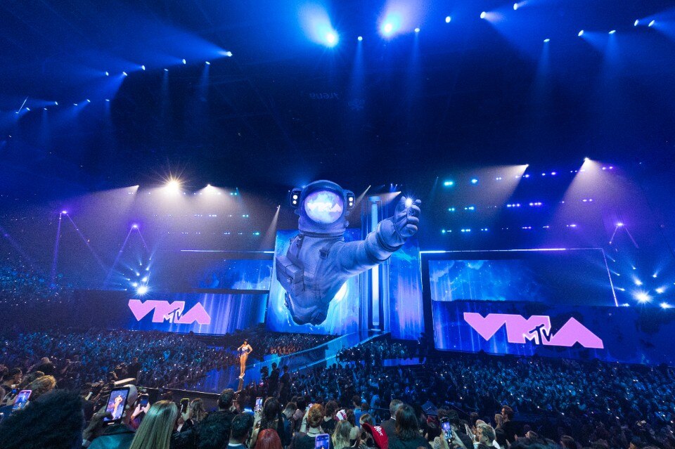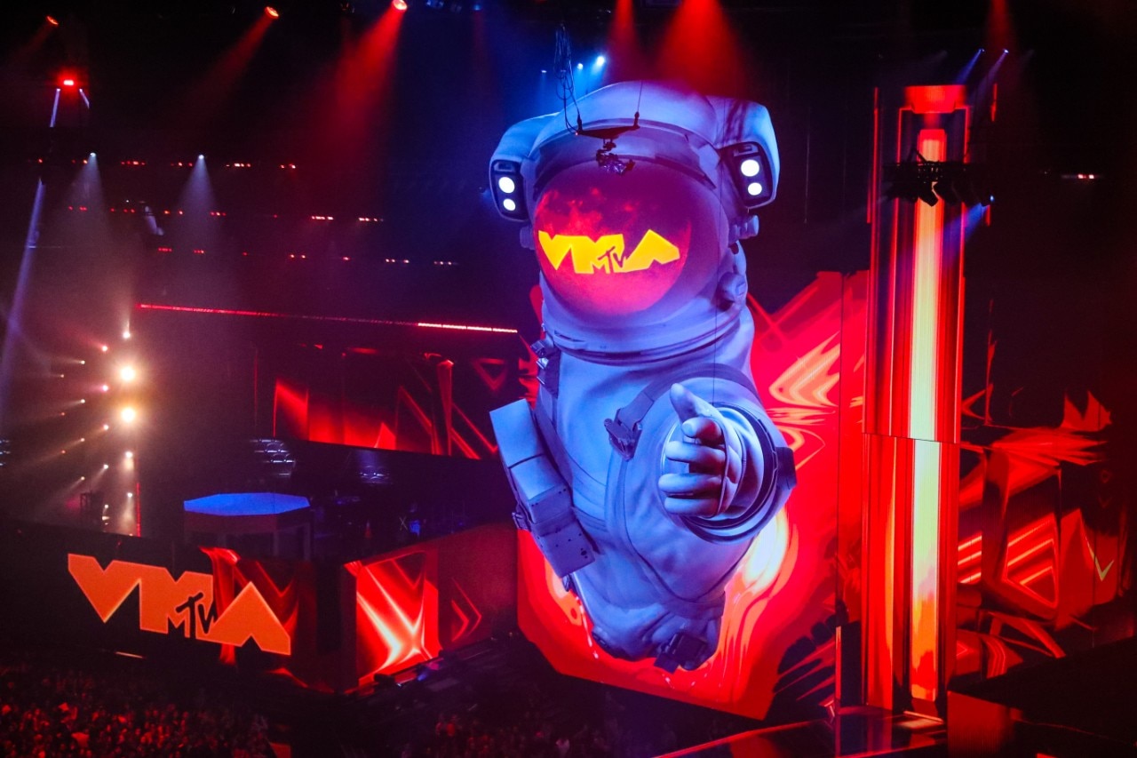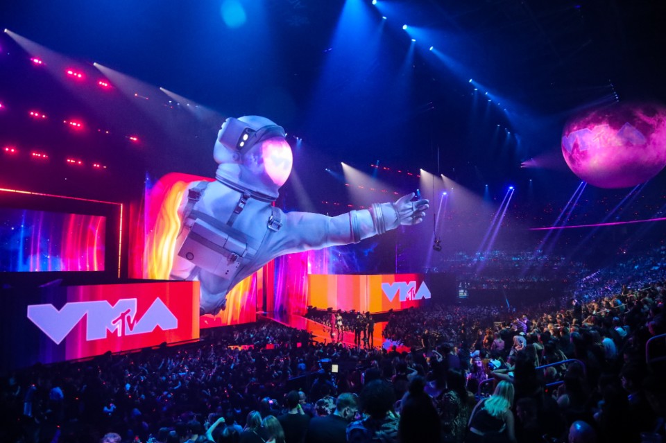 Per celebrare questo traguardo rendendo omaggio alle origini e all'evoluzione della cerimonia, lo stage design è stato stata affidato all’art director e production designer Matt Steinbrenner, storico collaboratore dei VMAs. Facendo capo al tema centrale dell’evento, l’intero progetto di Steinbrenner si è sviluppato attorno a un imponente Moon Person di 18 metri d’altezza e protratto per 16 metri verso la sala, in procinto di uscire da un gigantesco schermo. In uno spettacolo dalla forte carica nostalgica, il famoso astronauta di MTV non simboleggiava soltanto il passaggio dal mondo digitale a quello fisico, ma anche la connessione degli stessi VMAs con il proprio passato e futuro, diventando una tela su cui sono stati proiettati videoclip e momenti storici che ne hanno segnato questi primi quattro decenni.