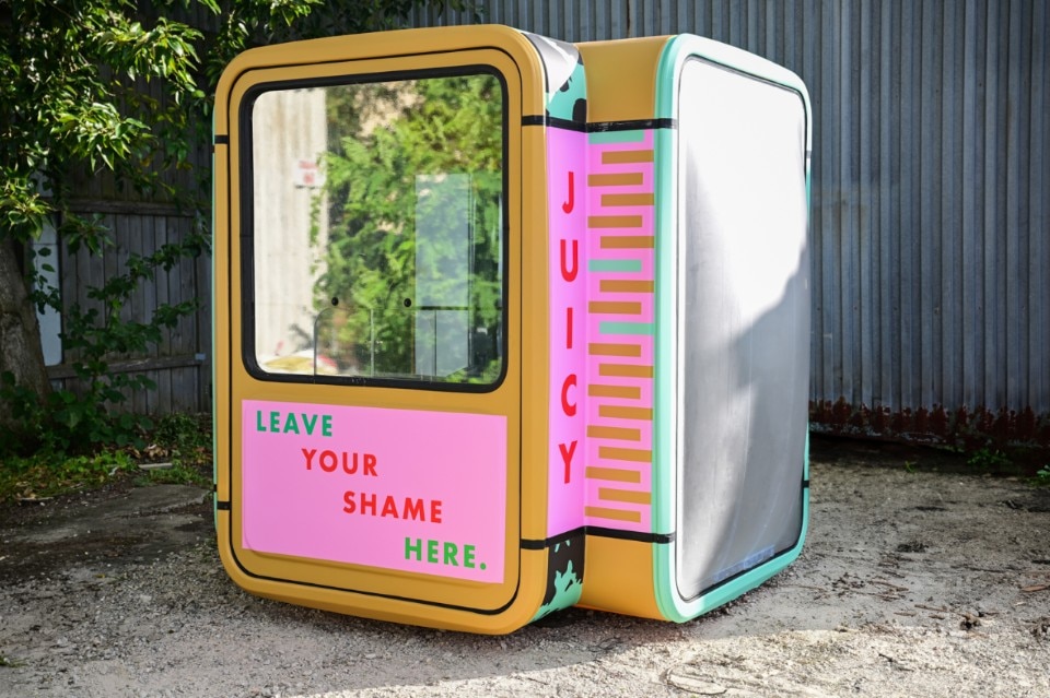 Commissionato dal London Design Festival e progettato in collaborazione con K67 Berlin e The Loss Project, Juicy Booth è l’ultimo progetto dell’artista londinese Annie Frost Nicholson, un mini chiosco che funge da santuario in cui chiunque possa riflettere, in un momento di pace, sulla vergogna “in tutte le sue sfaccettature”. Da settembre a dicembre 2024, il chiosco multisensoriale e interattivo attenderà i visitatori del Coal Drops Yard di King’s Cross per aiutarli a confrontarsi con le loro emozioni più profonde e complesse, offrendo un rifugio intimo e al contempo pubblico in cui meditare sulle proprie vulnerabilità.