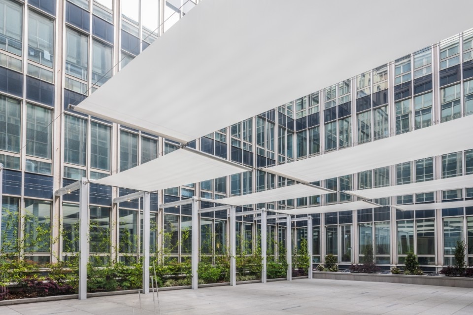 La corte interna – precedentemente concepita come spazio “contemplativo” a servizio del solo palazzo – viene restituita alla città come spazio per eventi: un nuovo varco collocato a ridosso dell’atrio, costituito da un ampio scalone e da un volume vetrato, introduce i visitatori nella corte all’aperto, liberata dalle vasche di terra, e una struttura perimetrale in telai metallici a ridosso delle facciate interne supporta la vegetazione rampicante e una copertura rimovibile in teli e cavi di acciaio, che avvolge lo spazio in caso di iniziative pubbliche.