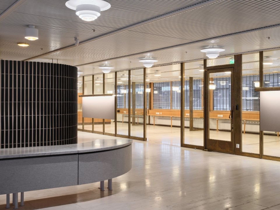 Oggi, il progetto di restauro e rinnovamento di Arkkitehdit Nrt mantiene il carattere maestoso e organico dell’opera, migliorandone la condizione. L’intervento, infatti, risponde a una duplice esigenza: prima di tutto riportare l’edificio a uno stato ottimale, con un procedimento che ha richiesto un profondo restauro degli elementi dell’architettura organica di Aalto, con la sostituzione del marmo di Carrara delle facciate – messo a dura prova dal clima rigido - e il trattamento di superfici interne e arredi, che sono stati accuratamente riportati alla loro originale bellezza. Poi, c’era l’esigenza di rinnovare l’edificio sia da un punto di vista ambientale, per ridurne le emissioni e aumentare l’efficienza energetica degli impianti, sia nel programma funzionale, che a distanza di quasi sessant’anni, nonostante le soluzioni spaziali di Aalto fossero innovative e flessibili, risultava obsoleto.