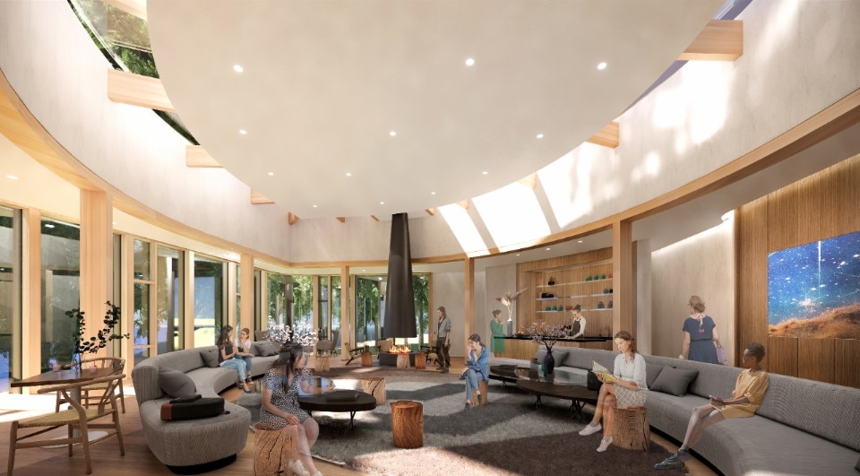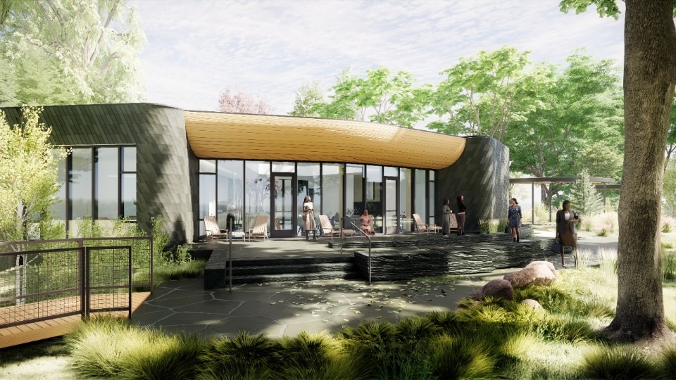 Il complesso è composto da tre edifici funzionalmente distinti: il “Lodge”, che comprende spazi polivalenti per il ristoro e la socializzazione, affacciati su terrazze all’aperto; il “Council” con sale riunioni e spazi per conferenze distribuiti attorno ad un cortile; il “Cabin”, con ambienti per incontri più intimi e spazi ricettivi per i visitatori.