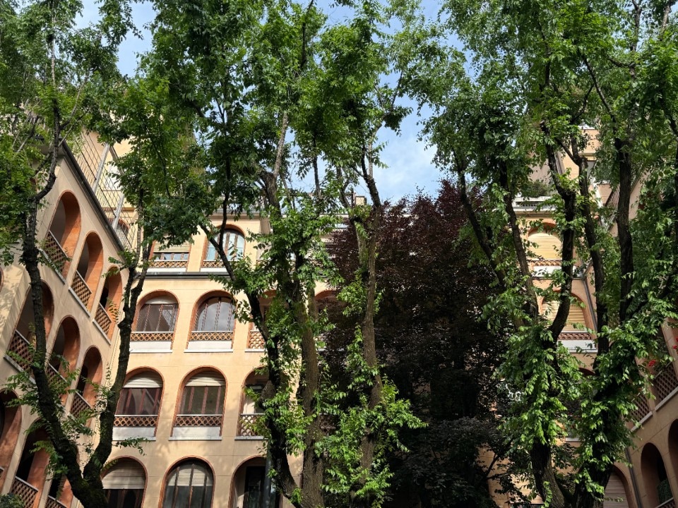 E ancora, è inedita anche la situazione che circonda la Villa in termini di ecosistema: via dei Giardini, per il modo in cui è nata, finisce per essere un bosco nel pieno cuore di Milano, appena dietro il métro Montenapoleone, punteggiato da edifici che sono piccoli saggi di moderno milanese – come la palazzina un tempo appartenuta a Santo Verace, firmata Carlo de Carli – con al centro un parco nato come giardino dei Perego di Cremnago. E questa stessa atmosfera prosegue in via De Marchi, prima del suo trasfigurarsi in via Turati e nell’elefantiaca via Vittor Pisani. Lo stesso Minucci aveva reso celebre Villa Ci per la comunità di anatre residente fissa nei giardini, assieme ad altre specie rare e ad una vegetazione variegatissima, incorniciata dagli archi delle facciate pontiane che richiamano gli archi della casa Rasini su Porta Venezia, e poco distante da un altro giardino milanese famoso anche lui per i suoi inquilini esotici: i fenicotteri della Villa Invernizzi.