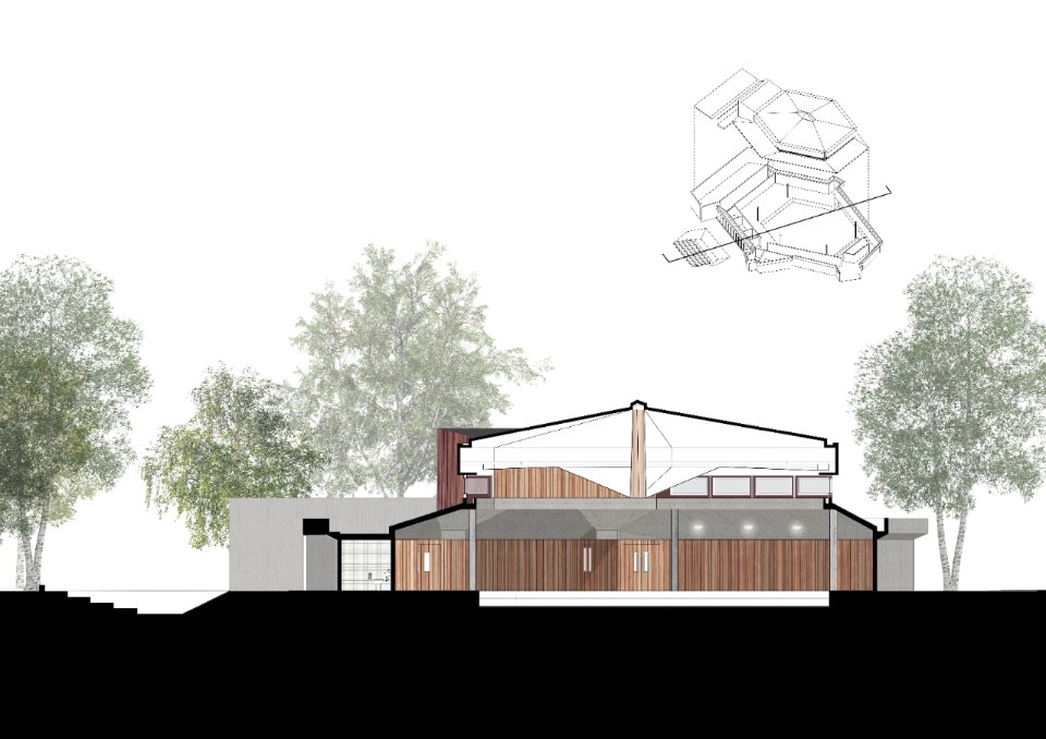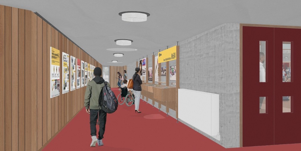 Il progetto di rinnovamento, sviluppato dallo studio in collaborazione con il personale della scuola, con gli utenti e le autorità locali, ha inteso riportare lo spazio alle caratteristiche iniziali, migliorandone la fruibilità, l’accessibilità e le prestazioni ambientali (attraverso la revisione degli impianti, degli accessi, degli arredi, degli spazi tecnici e di accoglienza) e trasformarlo in una “Hall for All”: un hub comunitario che ospiterà, oltre a mostre, eventi e performances, il MoBa, il primo Museo di Architettura Brutalista del paese (e del mondo) con mostre permanenti e un archivio, a complemento dei contenuti attualmente presenti in digitale.