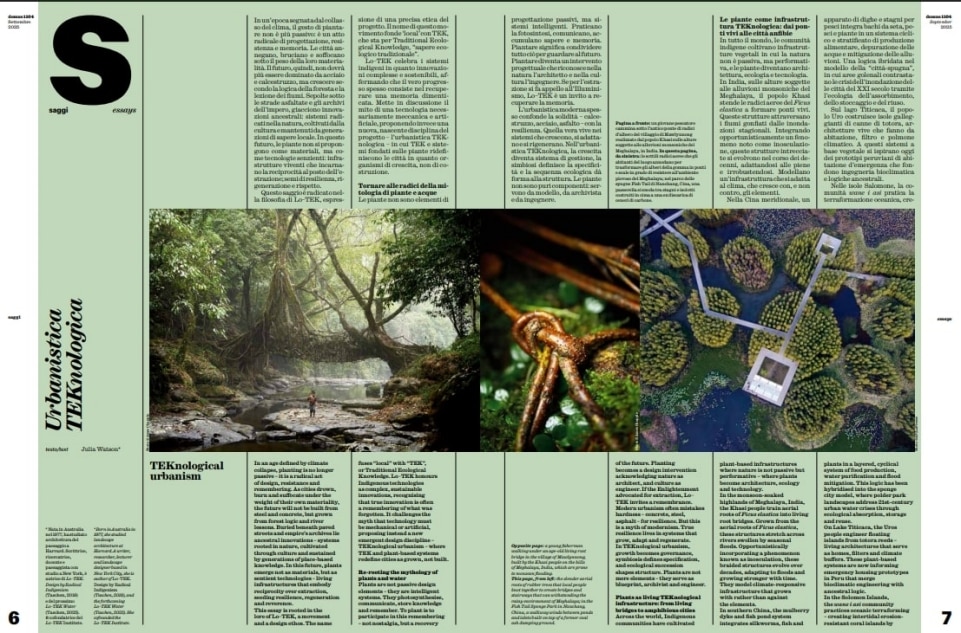 Ma il vero cuore pulsante di questo numero è l’esplorazione di un’architettura che si fa organismo, che respira e vive. Al di là di qualunque polemica politica, Stefano Boeri invita a guardare al Bosco Verticale non come a un edificio, ma a una foresta piantata verticalmente, un ecosistema che genera biodiversità. Le sue evoluzioni, come il progetto di social housing a Eindhoven, dimostrano che l'integrazione della natura non è un lusso, ma una necessità per tutti. In un'eco di questa visione, Richard Kennedy ci mostra il Presidio Tunnel Tops a San Francisco, dove la natura riprende ciò che la tecnica le aveva sottratto, trasformando un'infrastruttura in un parco vivente. E ancora, Sebastian Sas con il Nômade Temple in Messico e VTN Architects in Vietnam ci svelano un’architettura del fare, che si fonde con la vegetazione, cancellando il confine tra il costruito e il vivente. Il paesaggio, nell’intervista a Günther Vogt, non è più un mero scenario, ma l'infrastruttura fondamentale su cui si fonda la nostra esistenza, un “vicinato interspecie” che va progettato e curato.