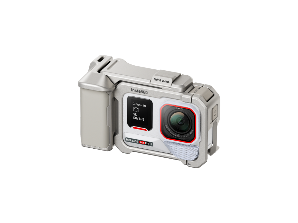 Questa identità “fotografica” trova il suo compimento con l’Explorer Kit, creato per trasformare la Ace Pro 2 “in uno strumento professionale per la fotografia di strada e i viaggi urbani”. Così riconfigurata la action cam diventa uno degli oggetti più sinceri ed esteticamente potenti visti negli ultimi anni. È una gabbia di metallo che avvolge la cam. È stata creata da Tilta, azienda sempre di Shenzhen, specializzata in accessori per foto e videocamere. Ma qui l’approccio è sbalorditivo, con una forma che ridisegna la funzione senza mai cadere nella banalità. Laddove la action cam è un gadget semplificato allo stremo nel suo design – questo nonostante la Ace Pro 2 sia, nel suo comparto, tra le più belle – il kit di Tilta ne strapazza l’identità estetica.