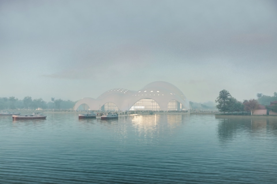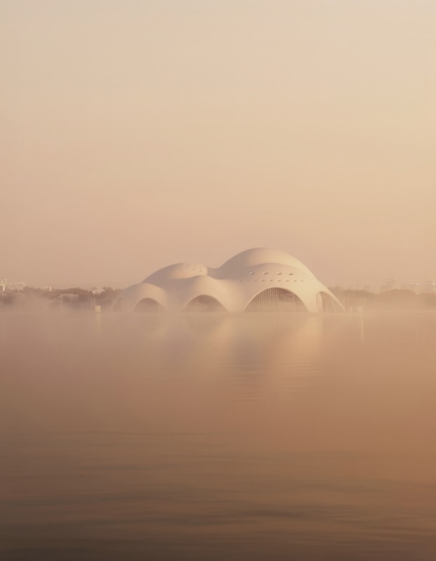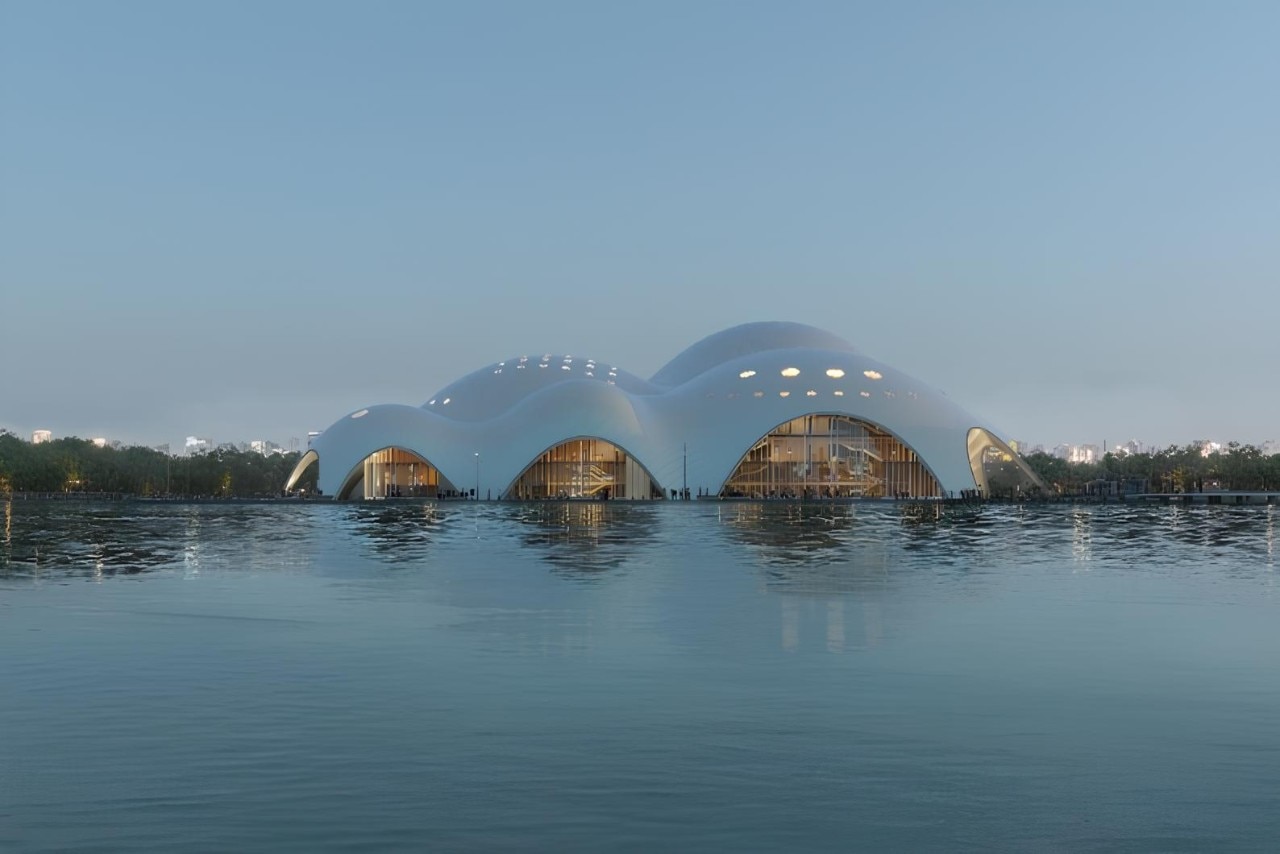 Il teatro, soprannominato "Isola della Musica" e ricavato dalla rimozione di circa 13.000 mq di terreno, è un ciclopico complesso galleggiante sull’acqua tra i due laghi West Lake e Đam Tri Lake, in un’area interessata da trasformazione e un tempo battuta dai pescatori di ostriche d’acqua dolce, per il commercio di perle rare di colore rosa, arancione e bianco. E proprio alle sagome articolate dei gusci di ostrica si ispira la composizione, caratterizzata da volumi sinuosi che dichiarano negli esterni l’organizzazione funzionale degli interni secondo un approccio organico intollerante a formalismi e mutuato da principi matematici desunti dalla natura.