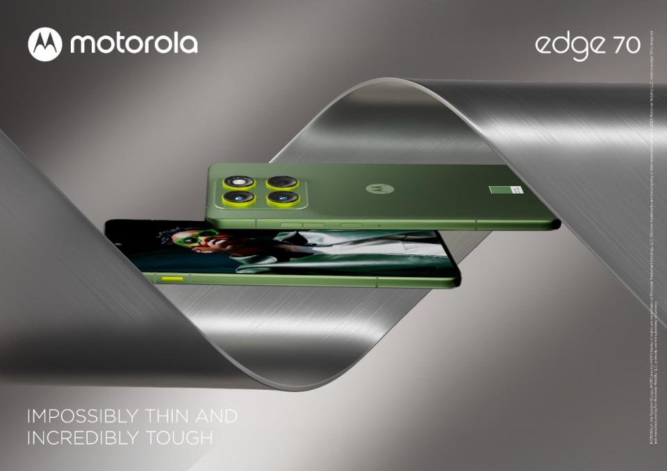 Motorola edge 70, infatti, è al momento lo smarpthone più sottile della sua categoria e in uno spessore di soli 5,99 mm e un peso complessivo di 159 grammi, racchiude il processore Snapdragon 7 Gen 4, 12 GB di memoria Ram e 512 Gb di spazio archiviabile. Resistente ai graffi e alle cadute più severe, secondo quei parametri militari che Motorola ha adottato da tempo, questo smartphone ha una scocca che si ispira alla texture del nylon ed è realizzata con lo stesso alluminio usato in aeronautica con Gorilla Glass 7i; gode inoltre di una protezione all’acqua e polvere certificata IP69.